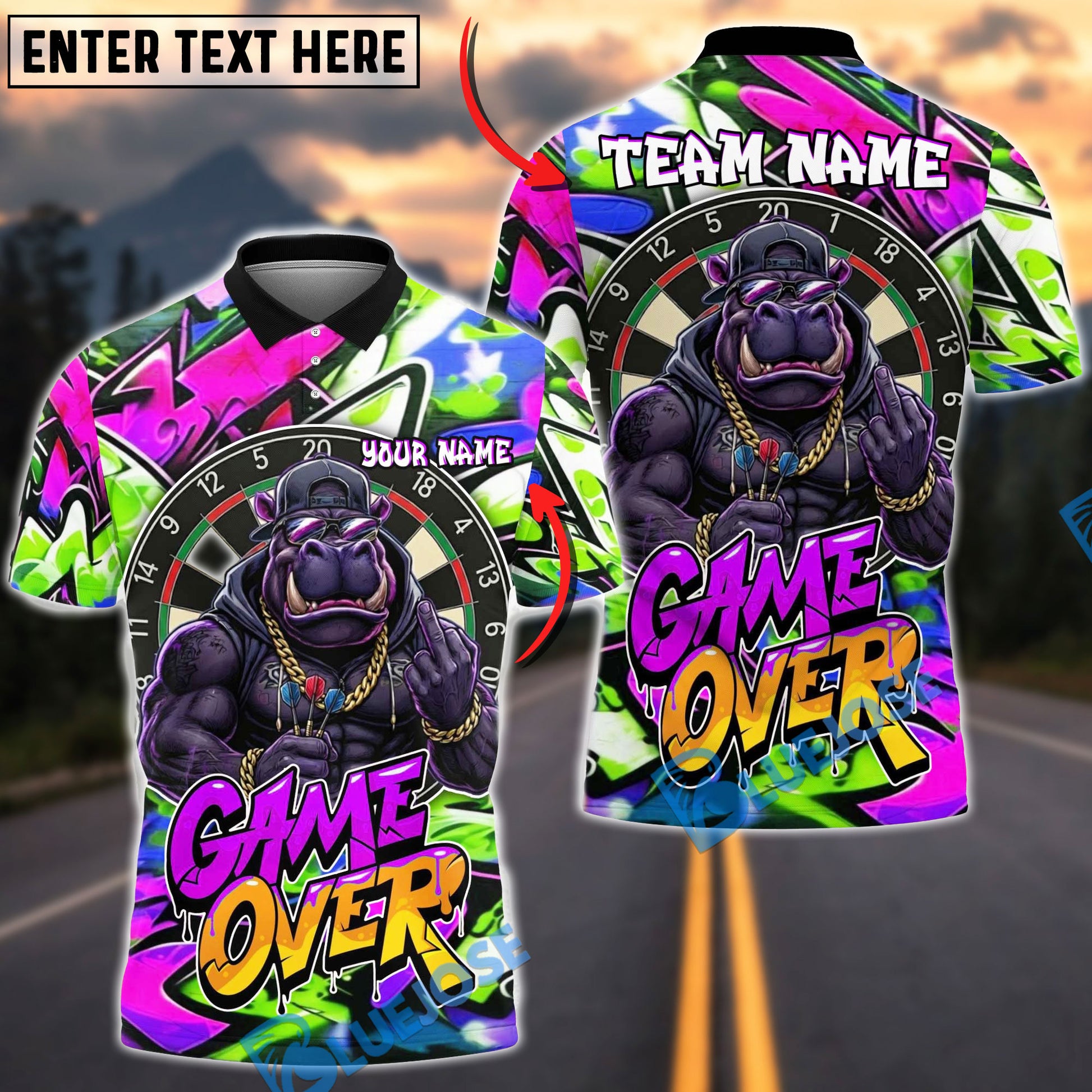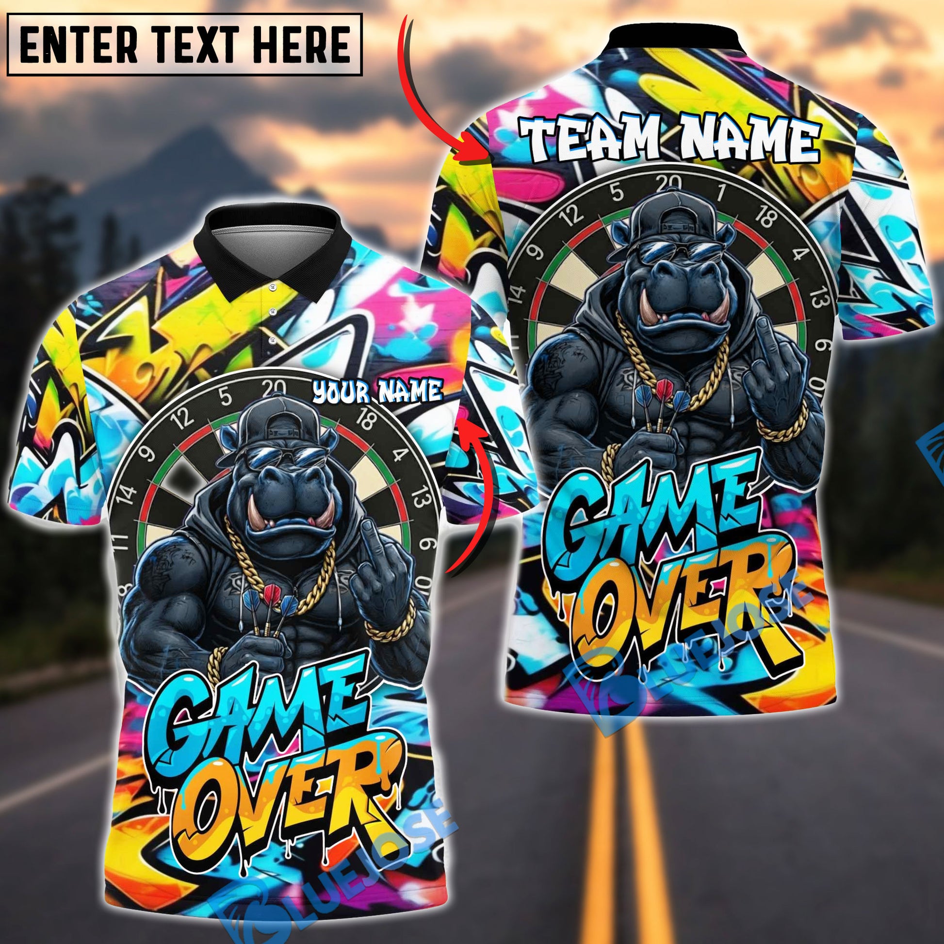 BlueJose Darts Street Hippo Graffiti Dartboard Multicolor Options Personalized Name Shirt (4 Colors)