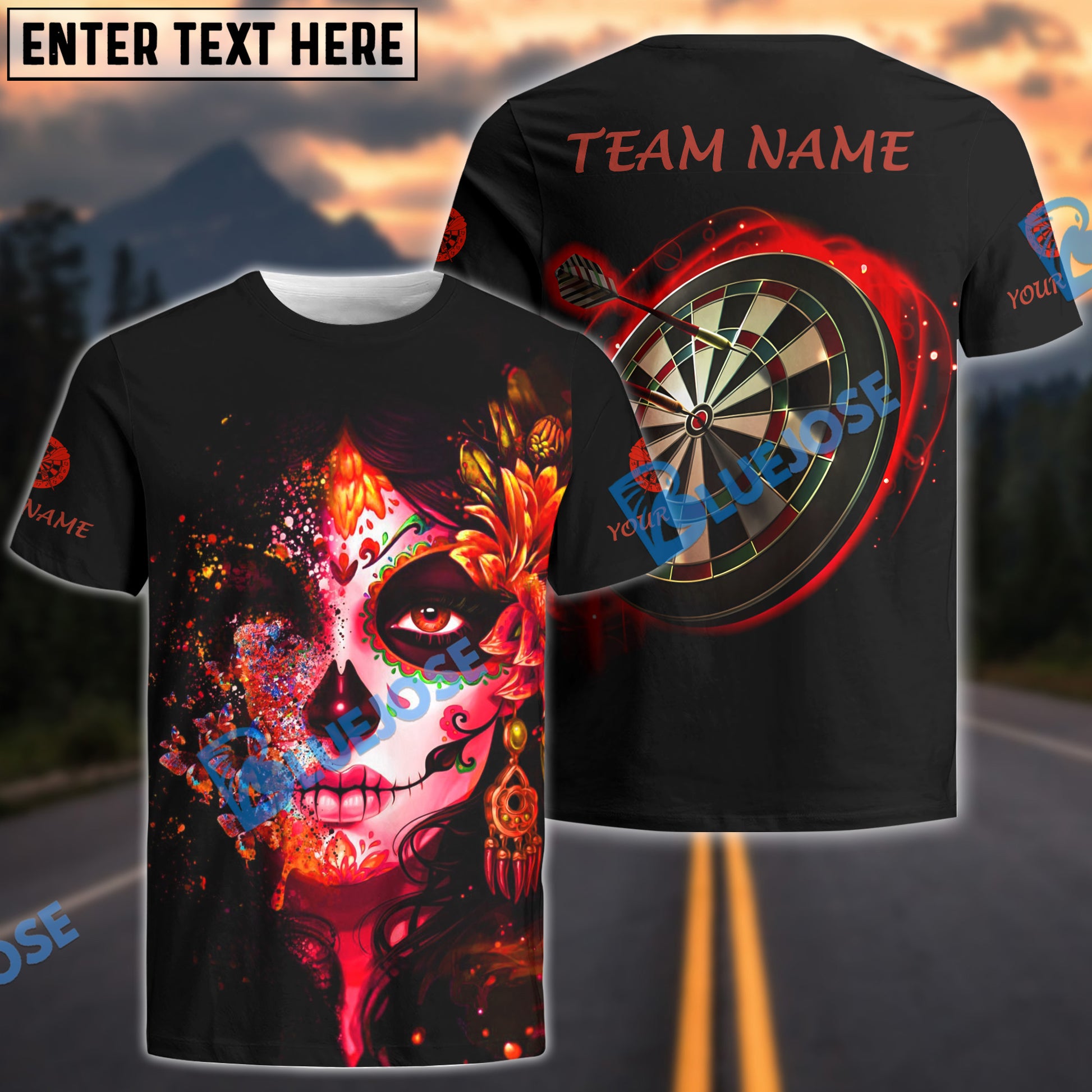 BlueJose Darts Sugar Skull Girl Personalized Name, Team Name Shirt (4 Colors)