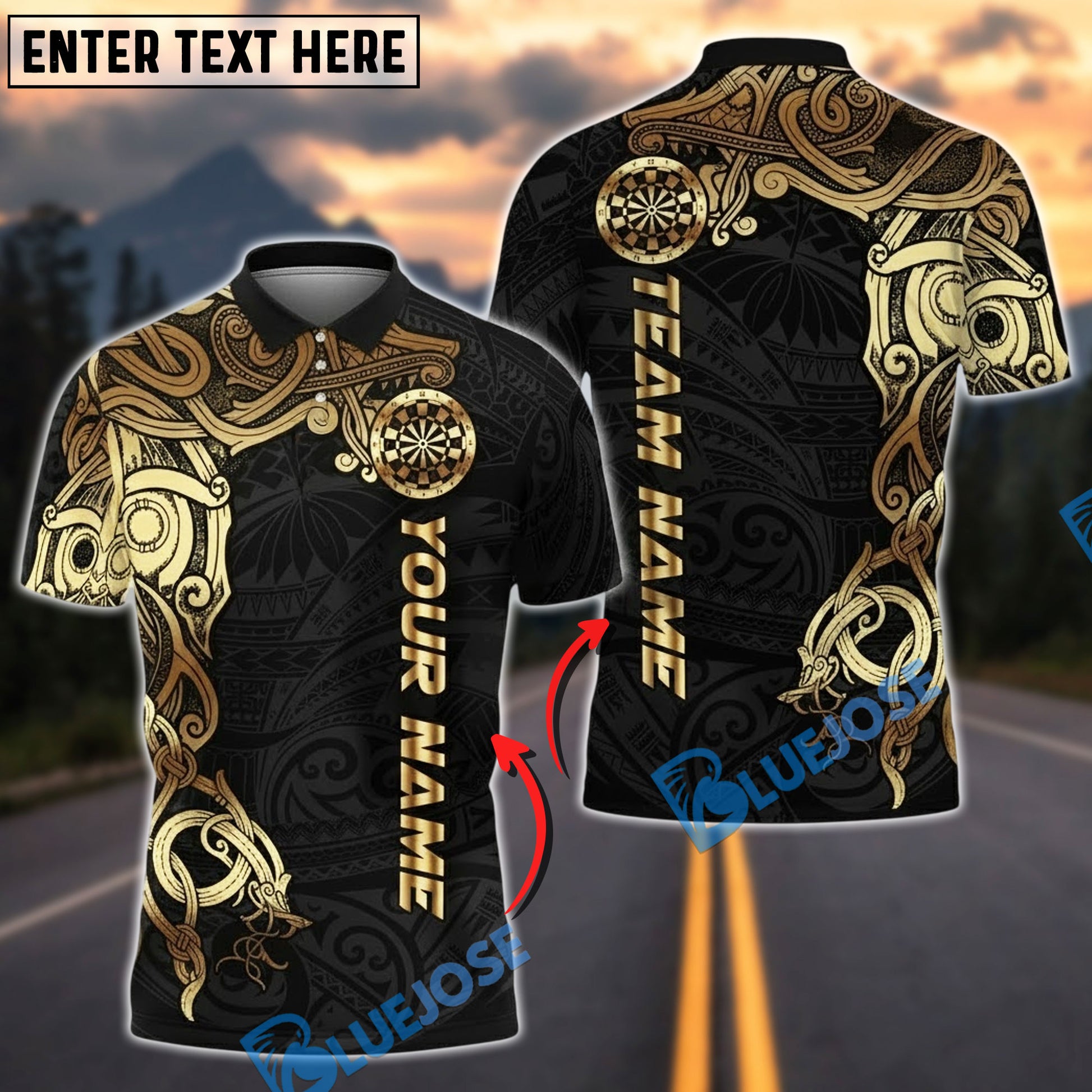 BlueJose Darts Tribal Gold Pattern Personalized Name, Team Name Unisex Shirt (6 Colors)
