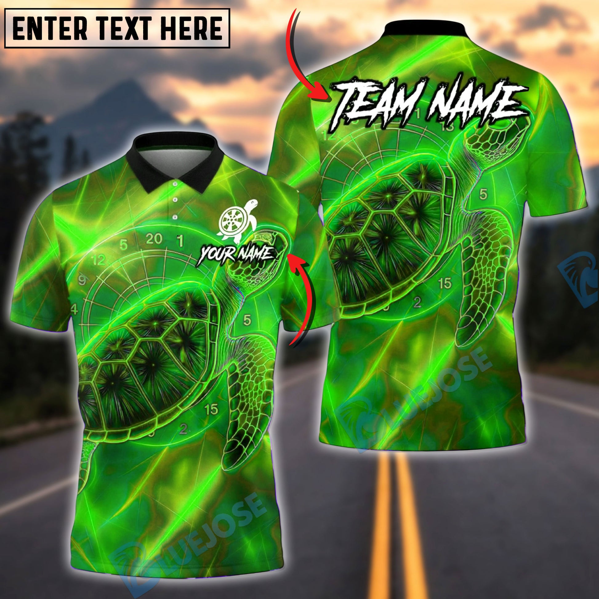 BlueJose Darts Turtle Dartboard Neon Glow Pattern Multicolor Options Personalized Name Shirt (4 Colors)