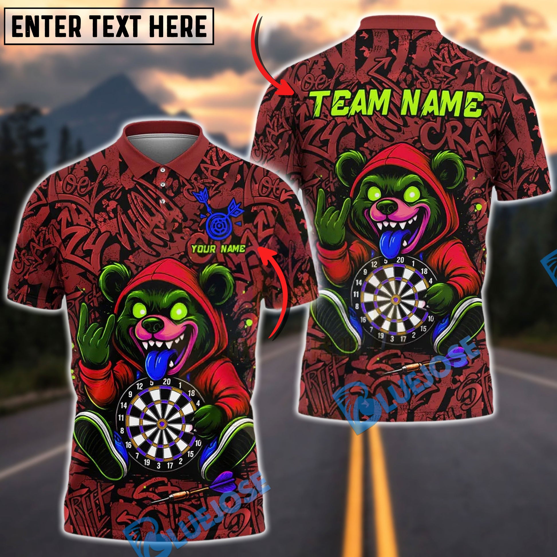 BlueJose Darts Urban Crazy Bear Customized Name, Team Name 3D Shirt (4 Colors)