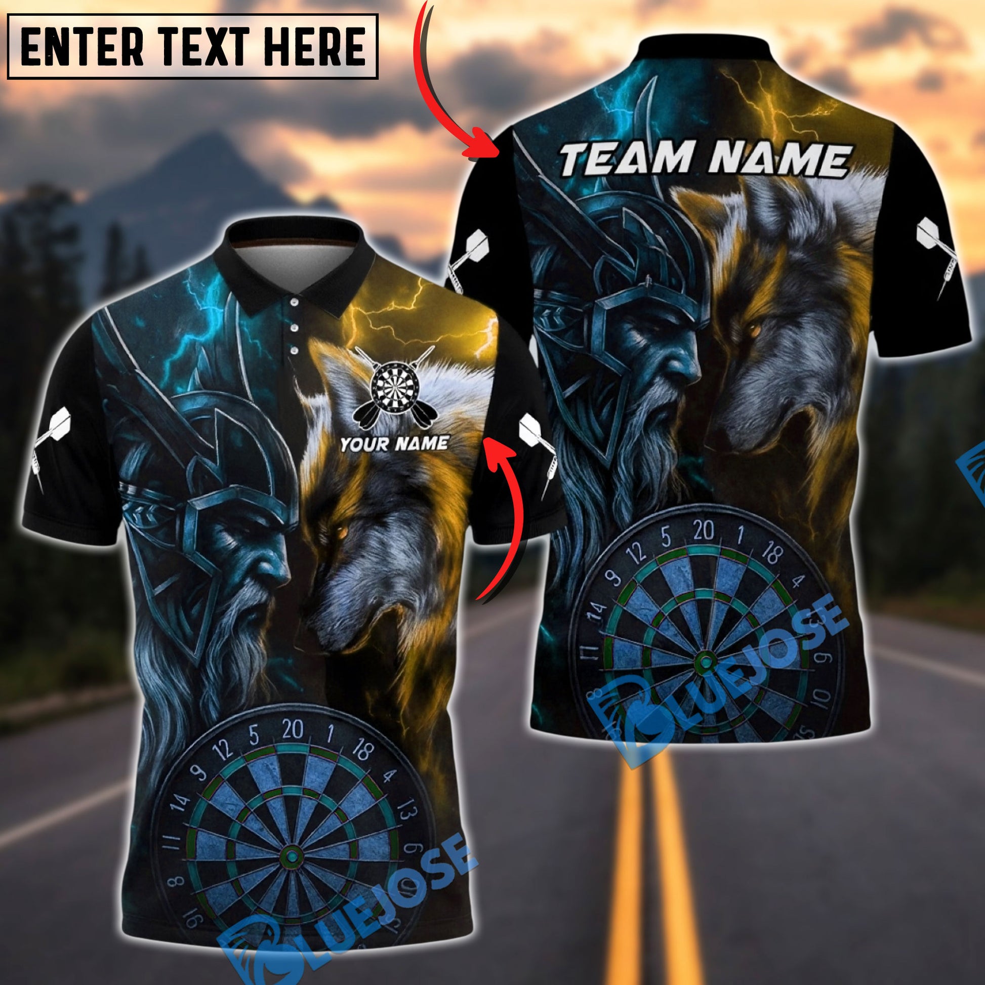 BlueJose Darts Viking Odin Wolf Lightning Clash Multicolor Options Personalized Name Shirt (4 Colors)