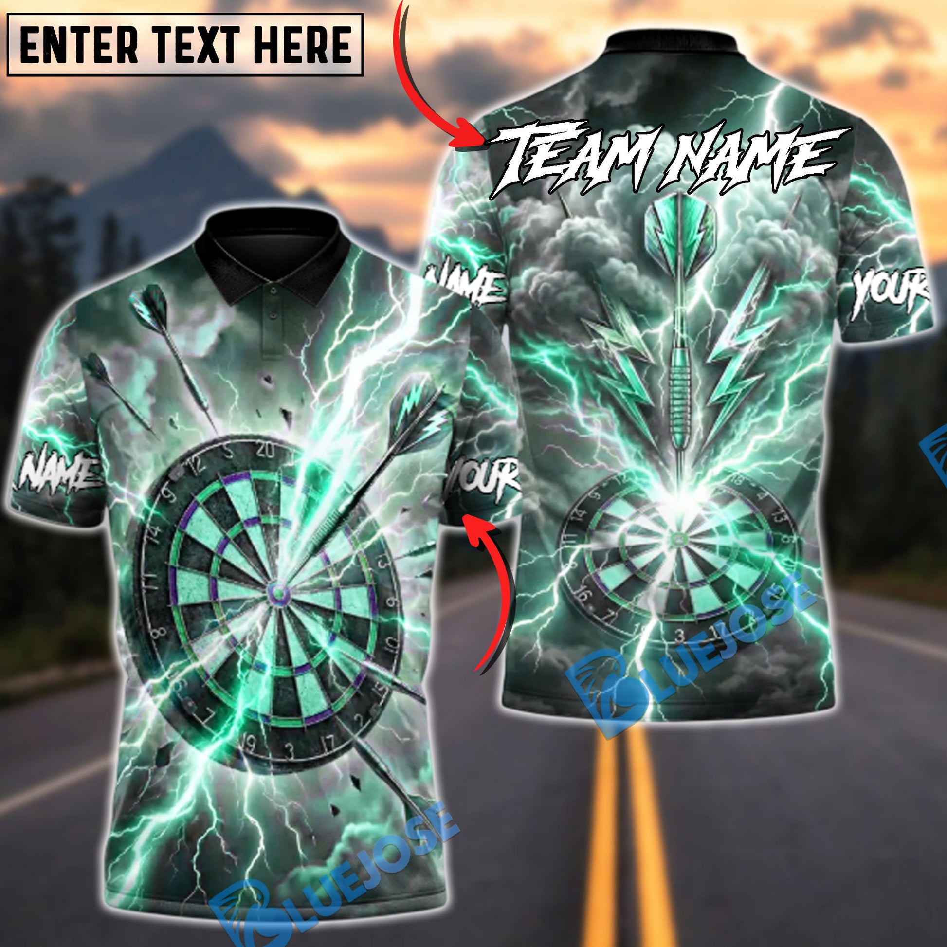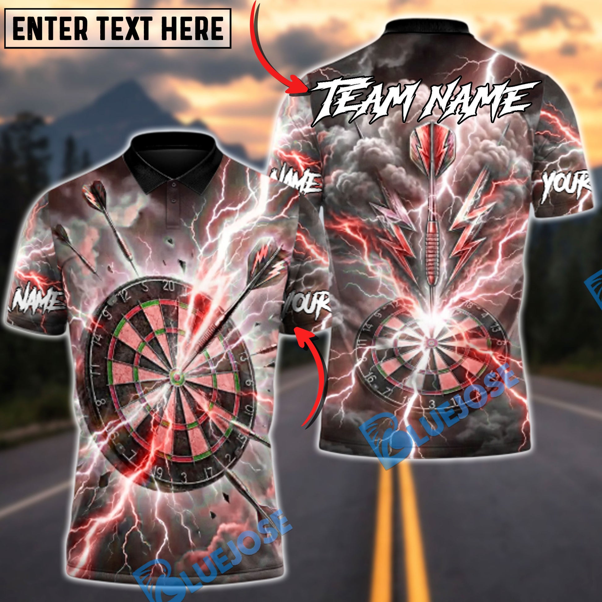BlueJose Darts Super Thunder Strike Multicolor Options Personalized Name Shirt (6 Colors)