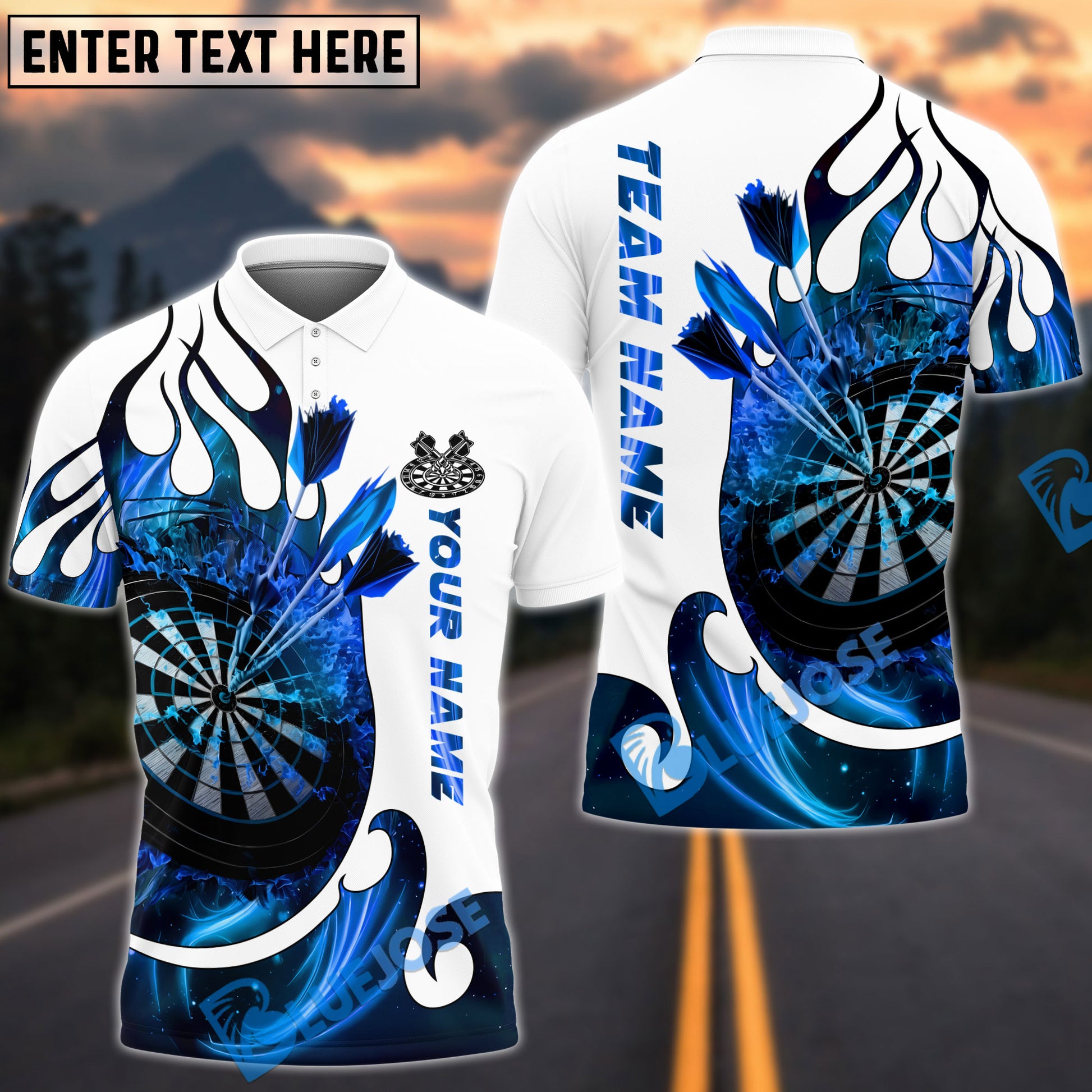 BlueJose Darts White Fire Dartboard Customized Name, Team Name 3D Shirt (4 Colors)