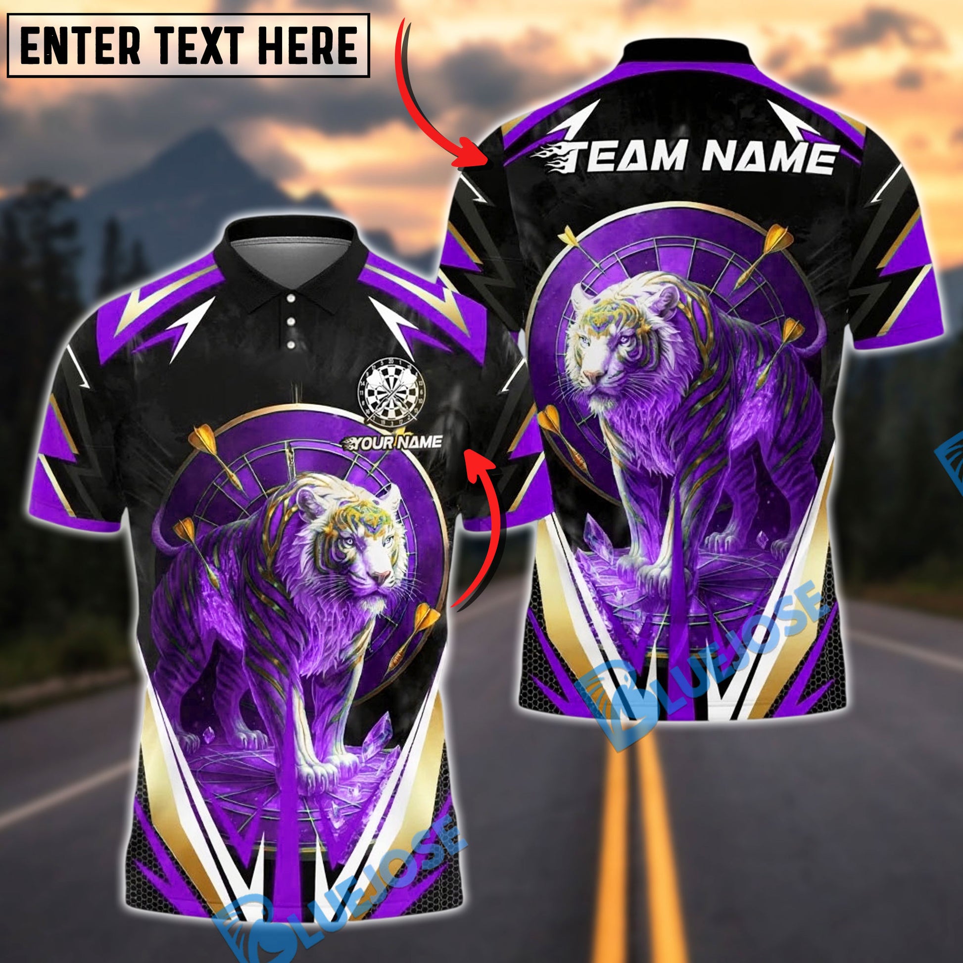 BlueJose Darts White Tiger Blue Flame Customized Name, Team Name 3D Shirt (4 Colors)