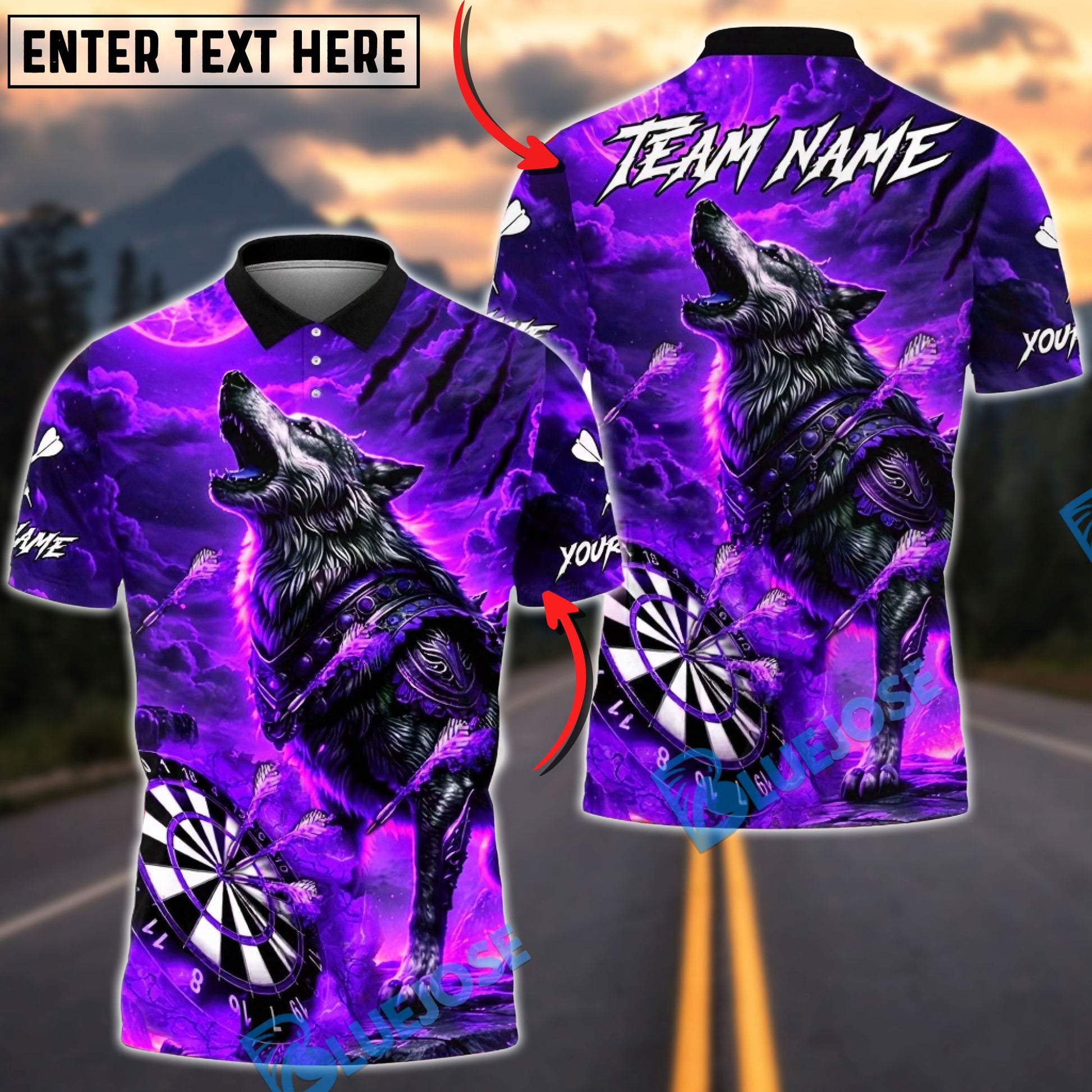 BlueJose Darts Wolf Fire Storm Dark Fantasy Multicolor Options Personalized Name Shirt (4 Colors)