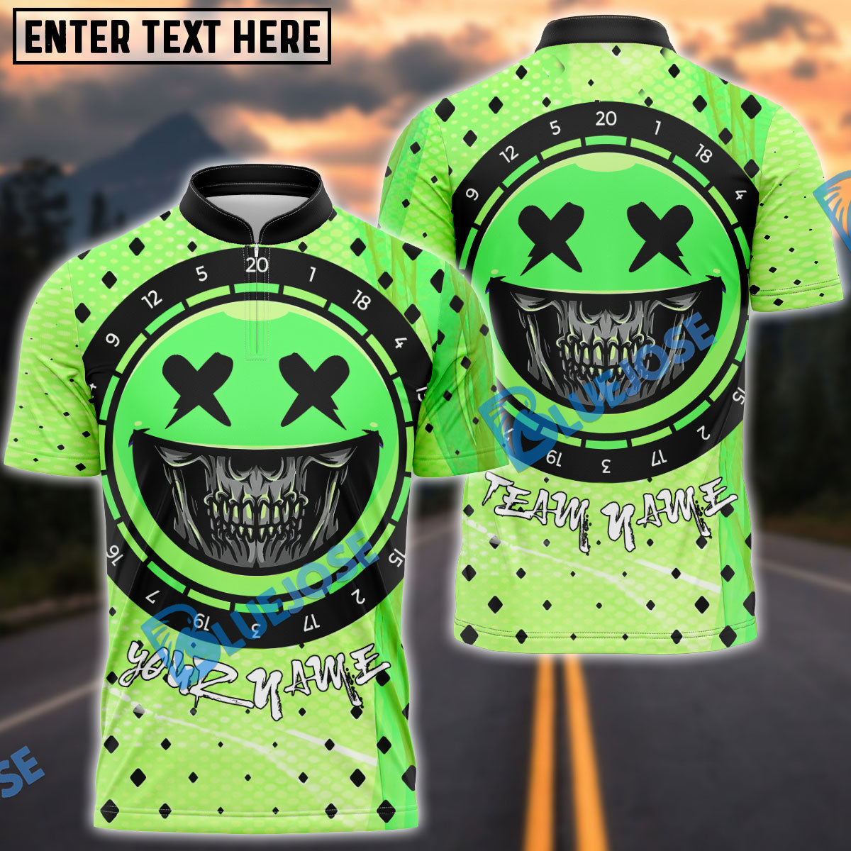 BlueJose Darts X-Eyes Smile Rebellion Personalized Name, Team Name Shirt (4 Colors)