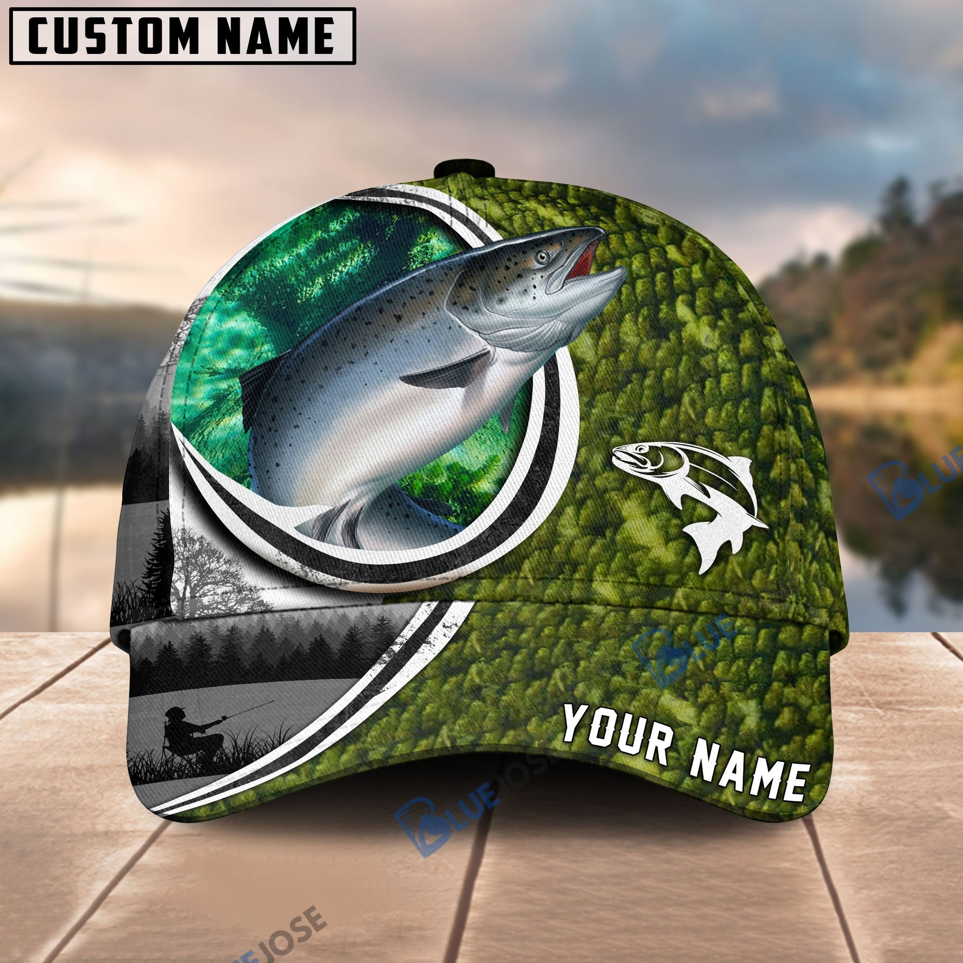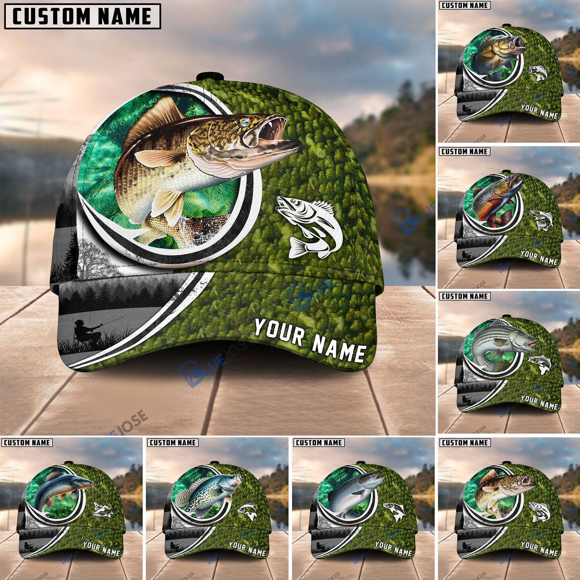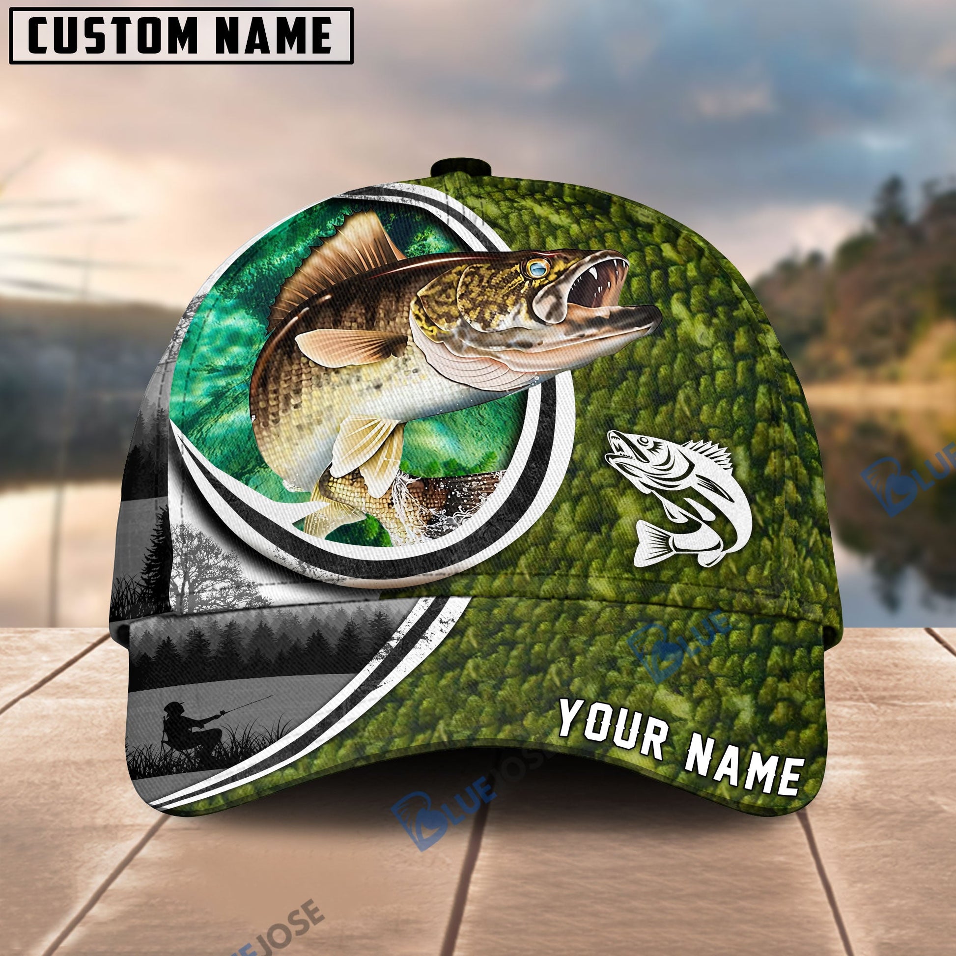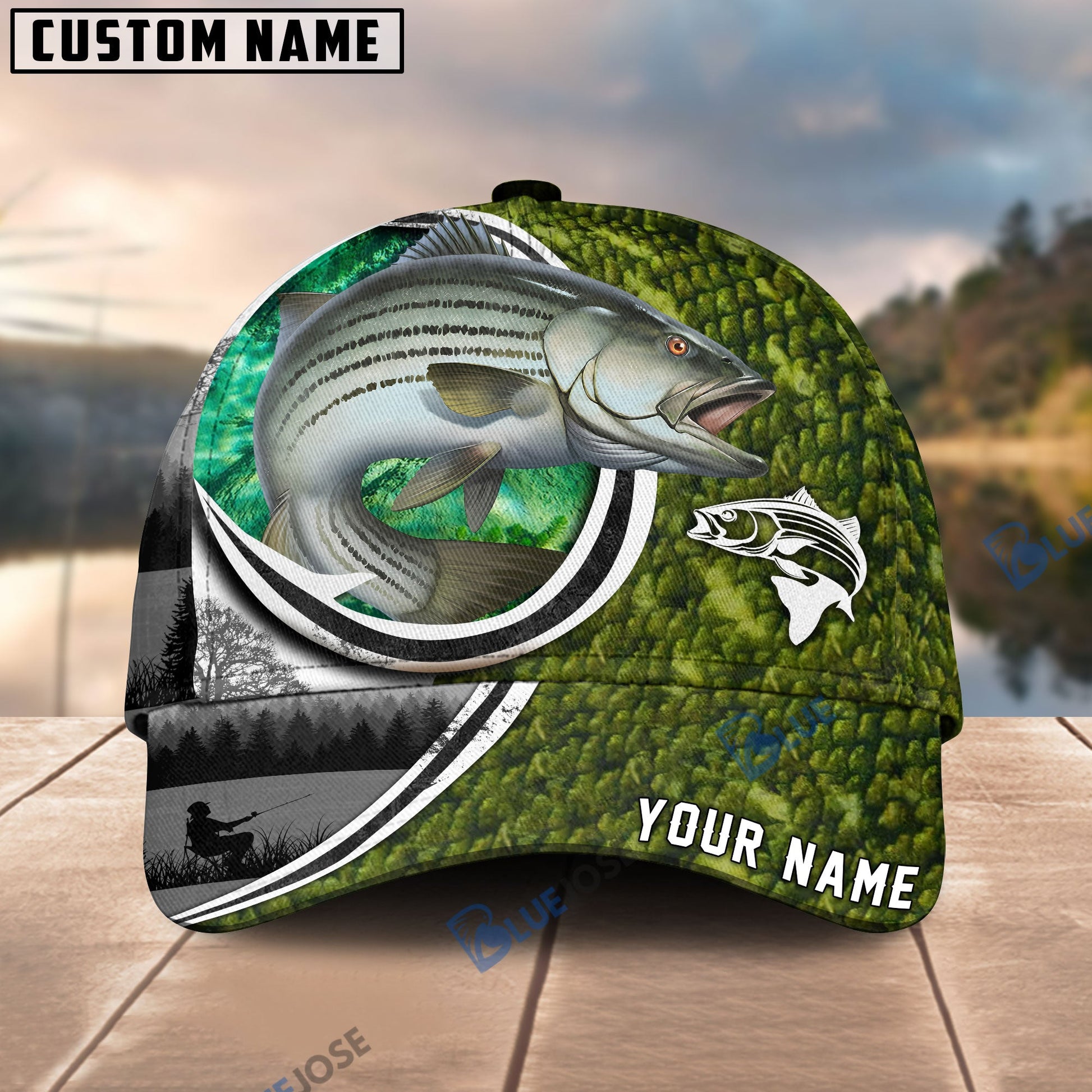 BlueJose Fishing Heart Hook Personalized Cap (Bass, Striped Bass, Catfish, Trout, Crappie, Salmon, Walleye)