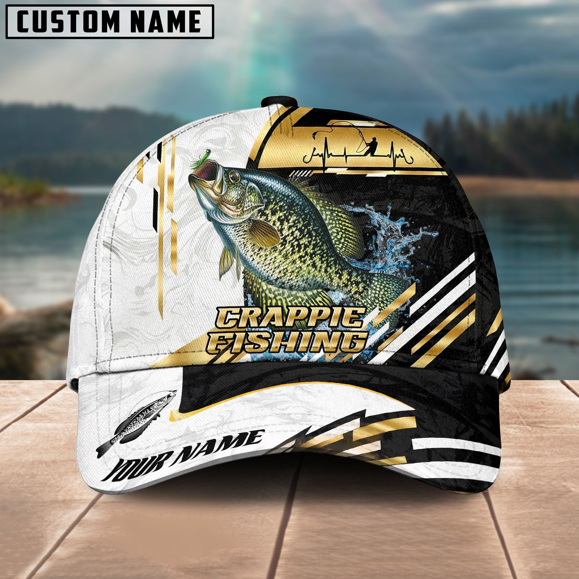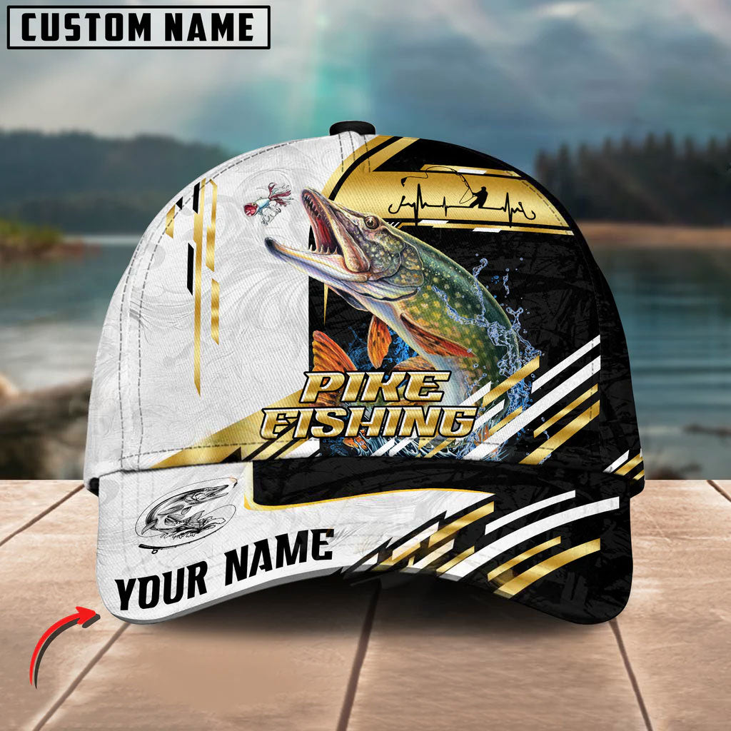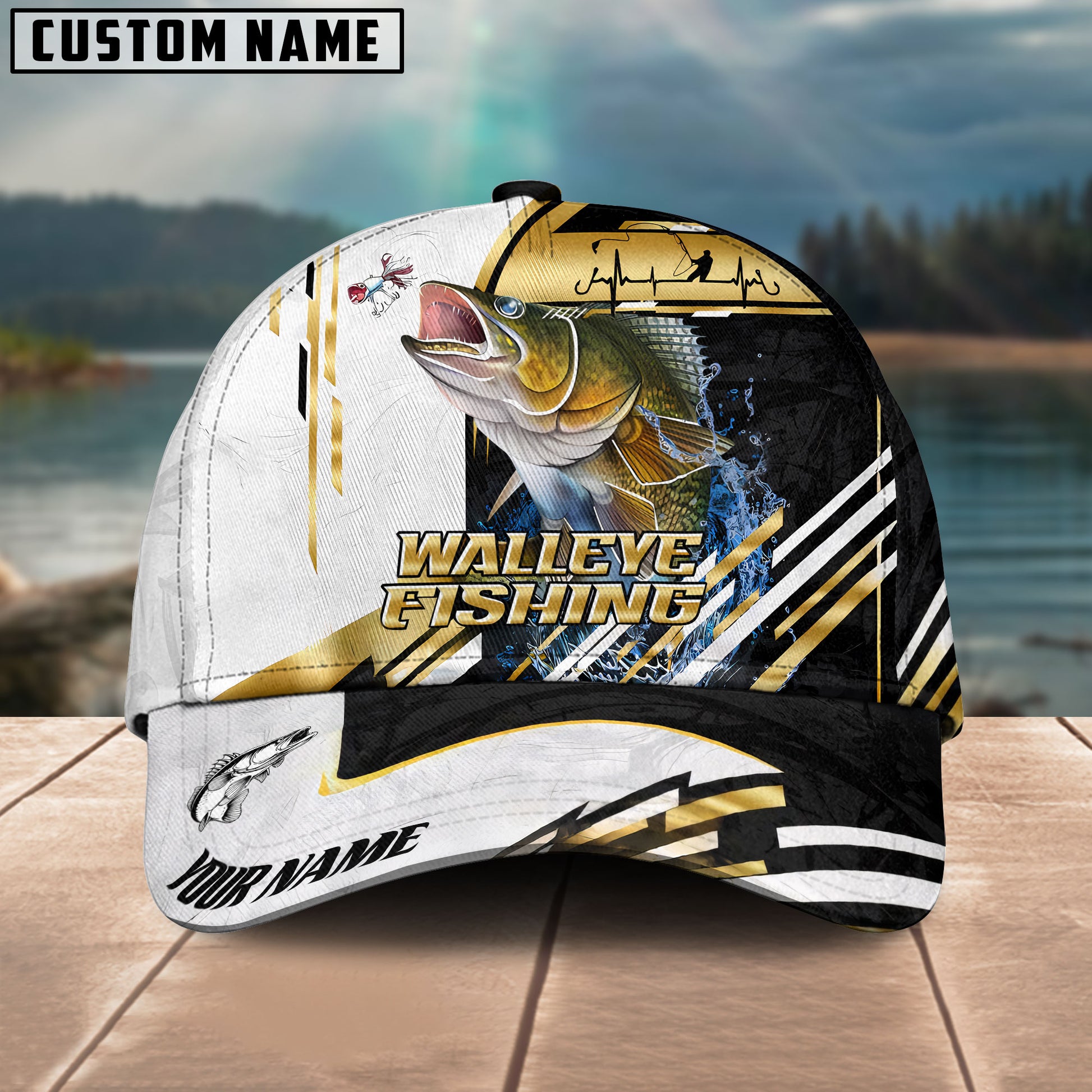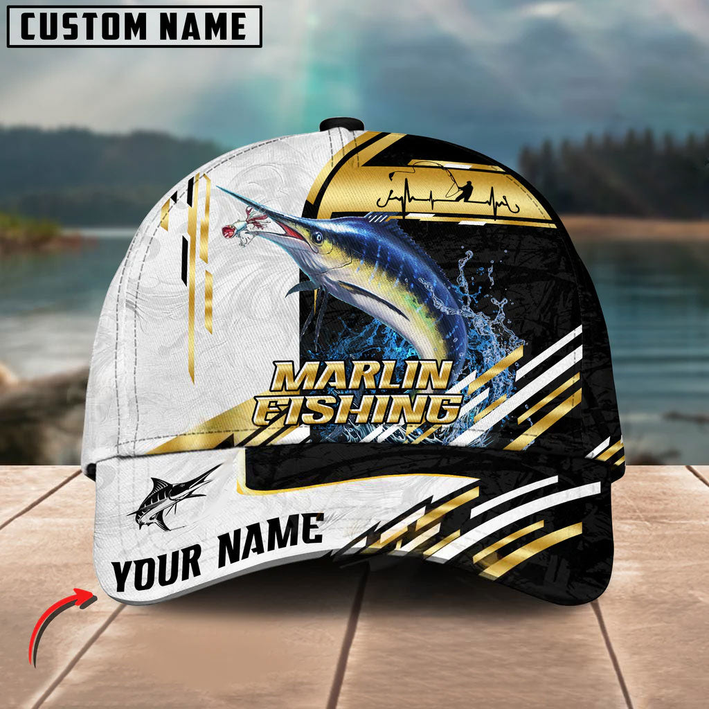 BlueJose Fishing Hook Graphic & Jumping Fish Art Personalized Cap (Tuna, Marlin, Mahi-Mahi, Pike, Bass, Walleye, Trout, Crappie)