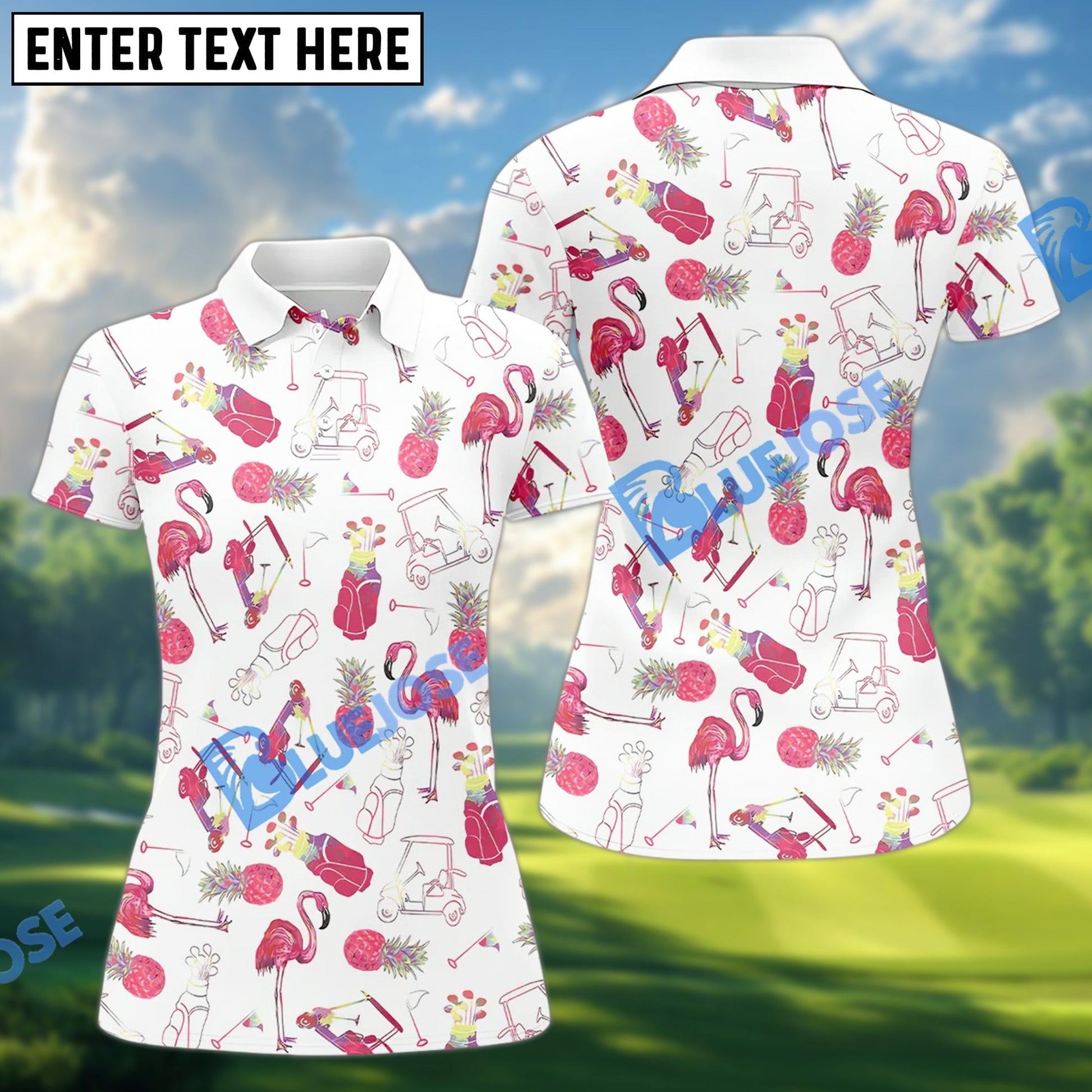 BlueJose Fun Flamingo Golf Women’s Polo Shirt, Custom Name & Team Name 3D Shirt