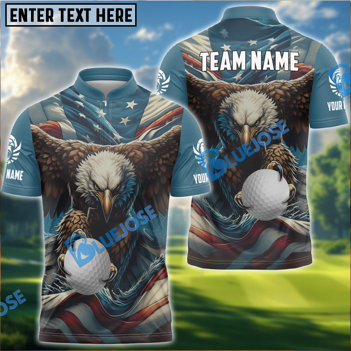 BlueJose Golf Ball Eagle Flag Premium Customized Name, Team Name 3D Shirts ( 6 Colors)