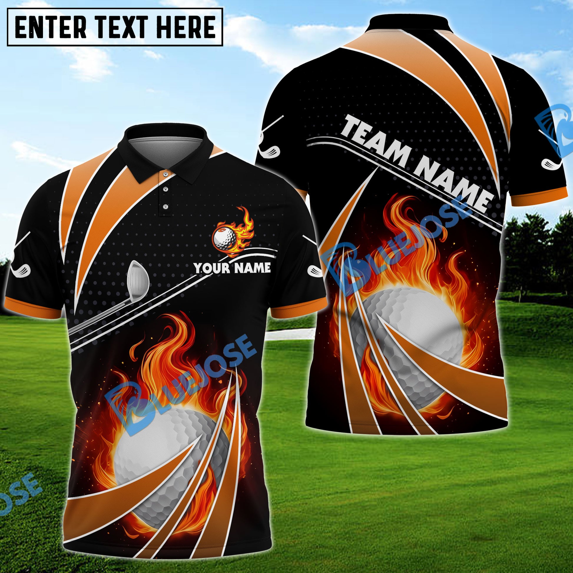 BlueJose Golf Fire Light Customized Name, Team Name 3D Shirts (6 Colors)