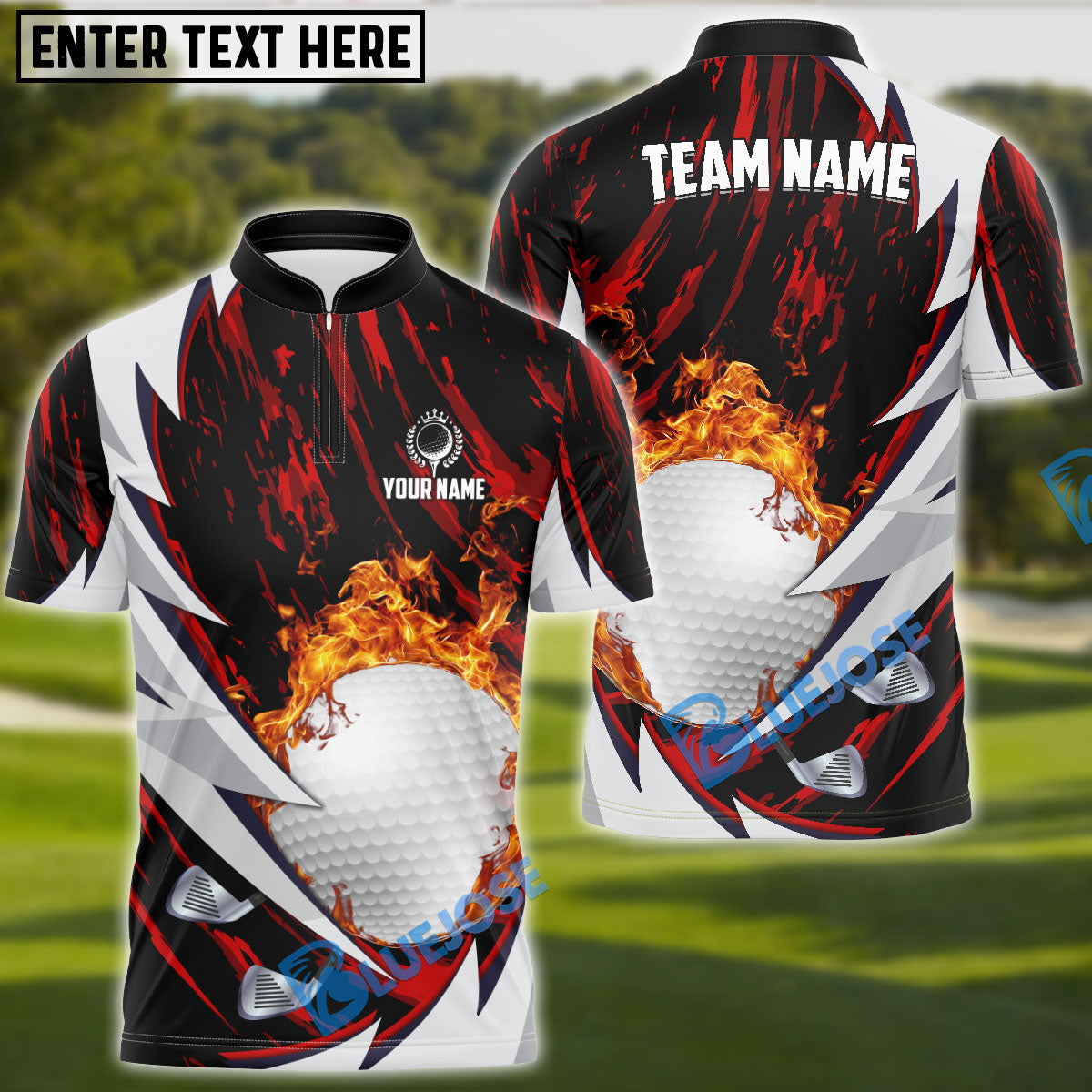 BlueJose Golf Fire Thunderstorm Customized Name, Team Name 3D Shirts (4 Colors)