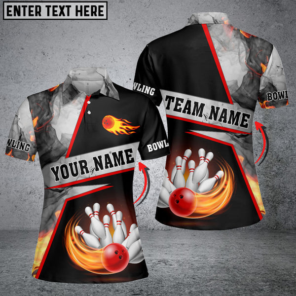 BlueJose Grey Bowling Ball And Pins Smoke Pattern Premium Customized Name 3D Shirt For Women