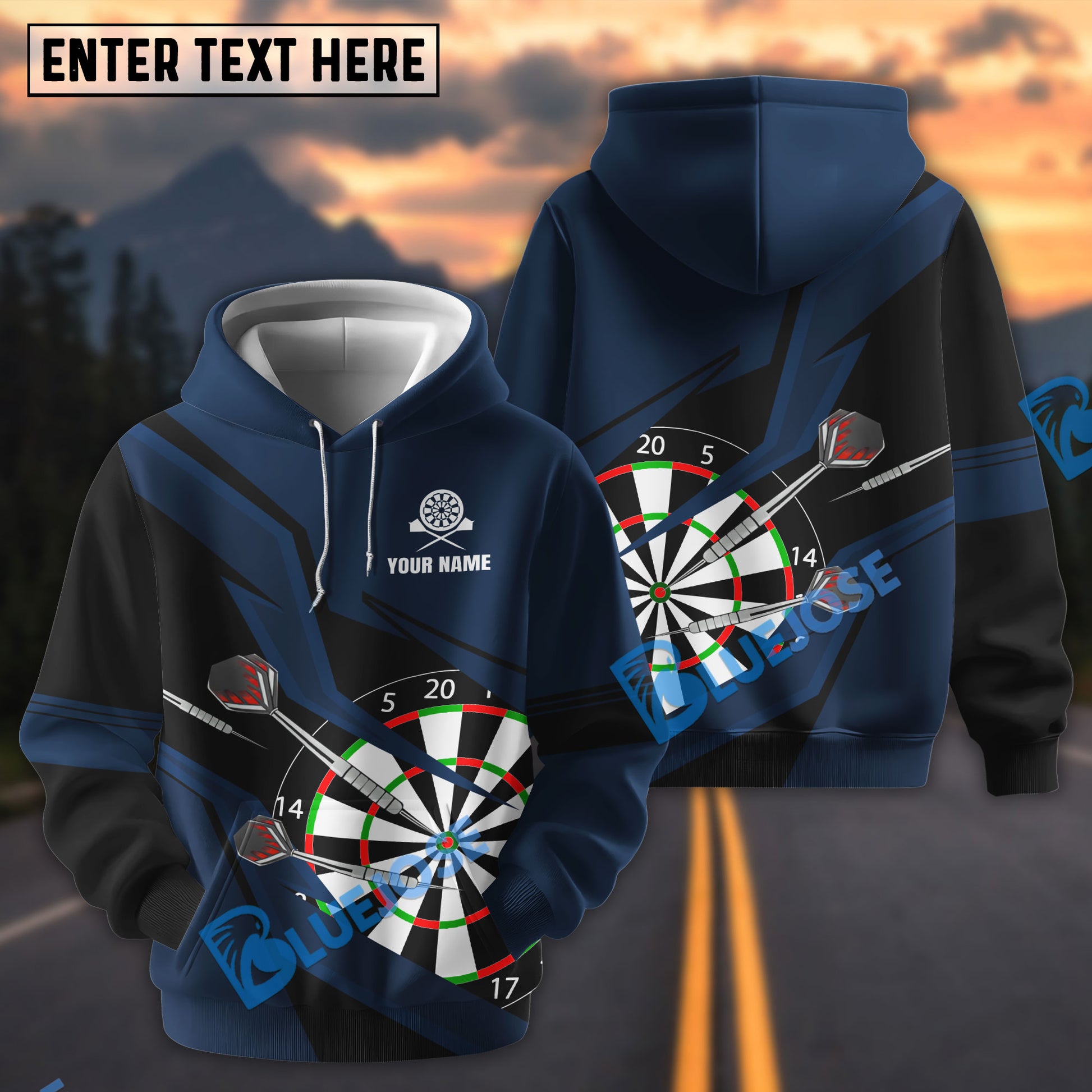 BlueJose Lightning Pattern Darts Personalized Name, Team Name Hoodie