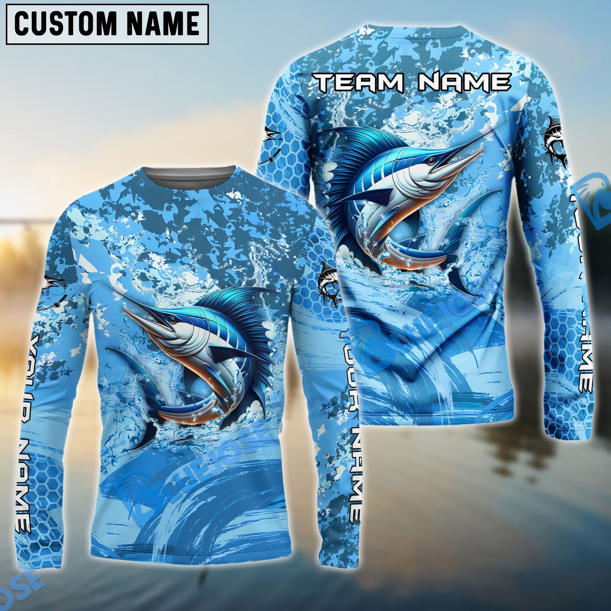 Bluejose Marlin Fishing Catch The Blue Wave Custom Name & Team Name 3D Shirts