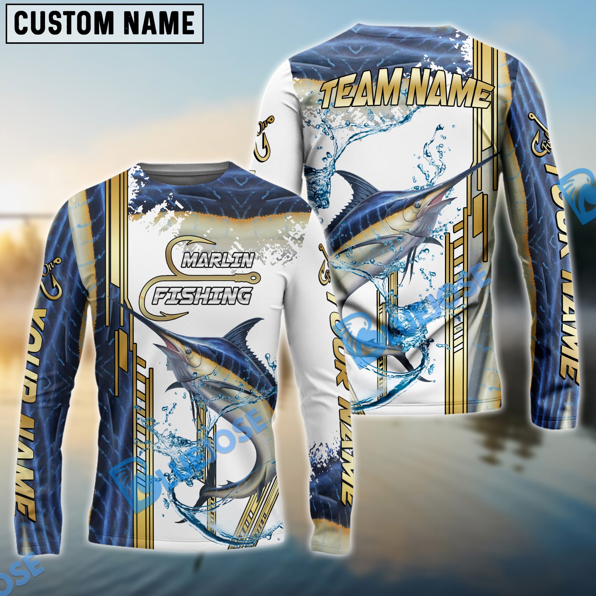Bluejose Marlin Fishing Skinfish Golden Line Pattern Custom Name & Team Name 3D Shirts