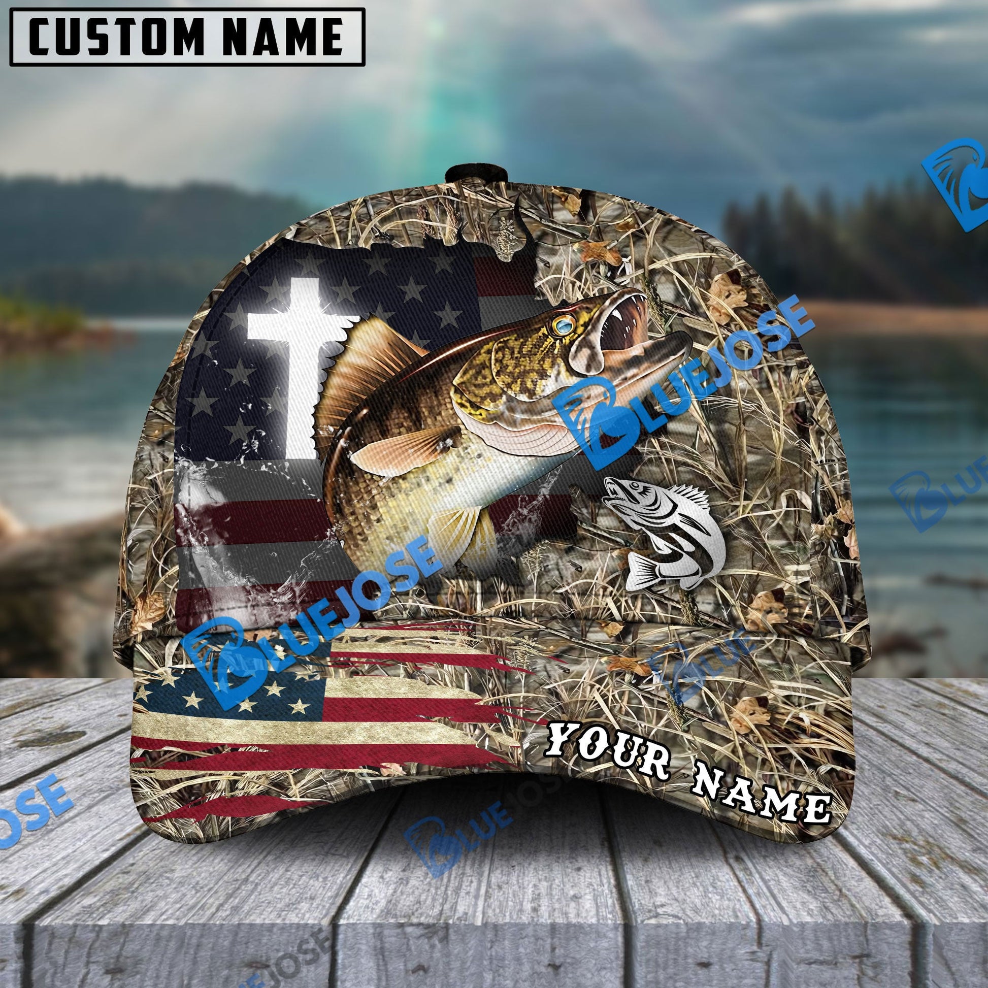 BlueJose Personalized Walleye Cross Camo Fishing Classic Cap