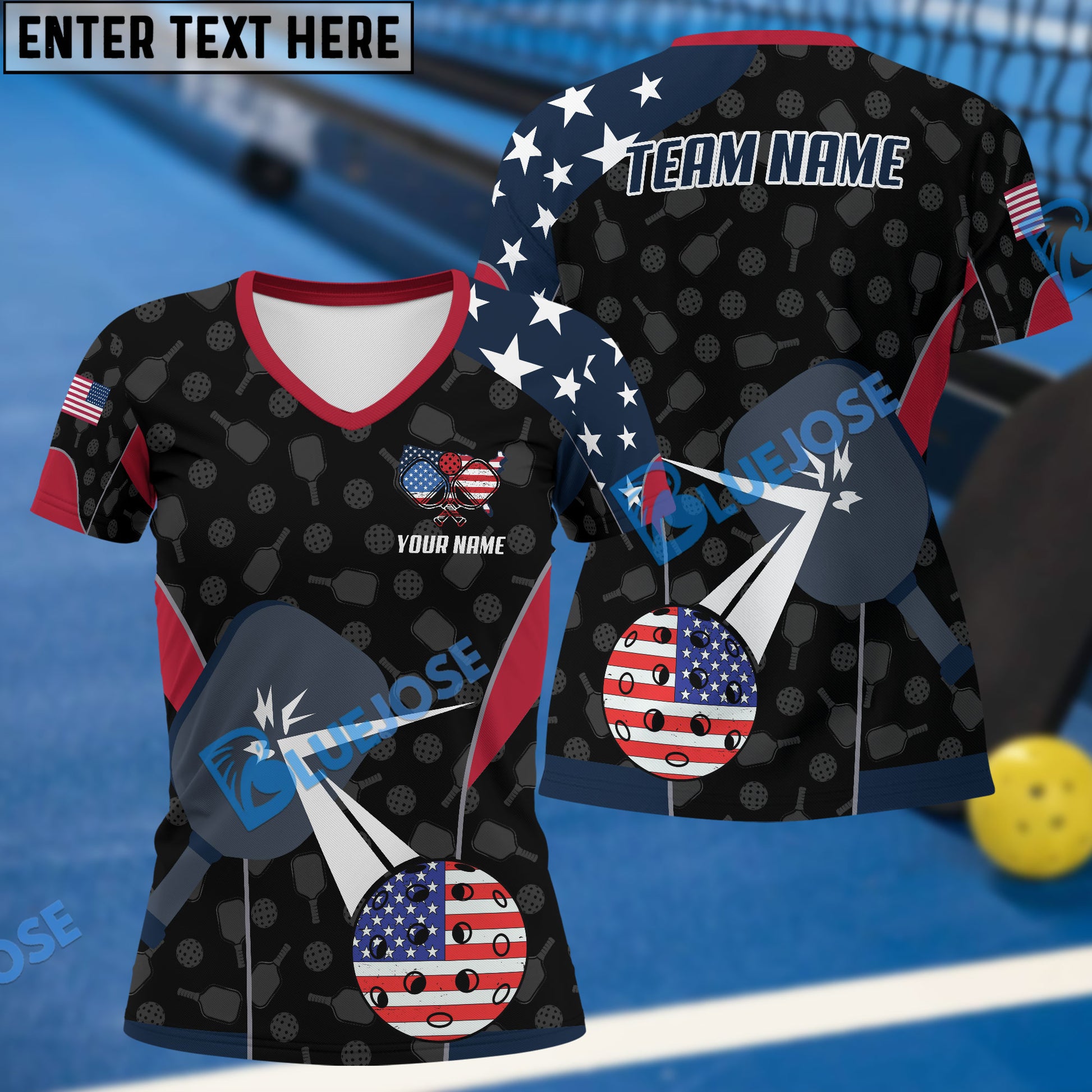 BlueJose Pickleball American Style Personalized Name, Team Name Unisex Shirt (4 Colors)