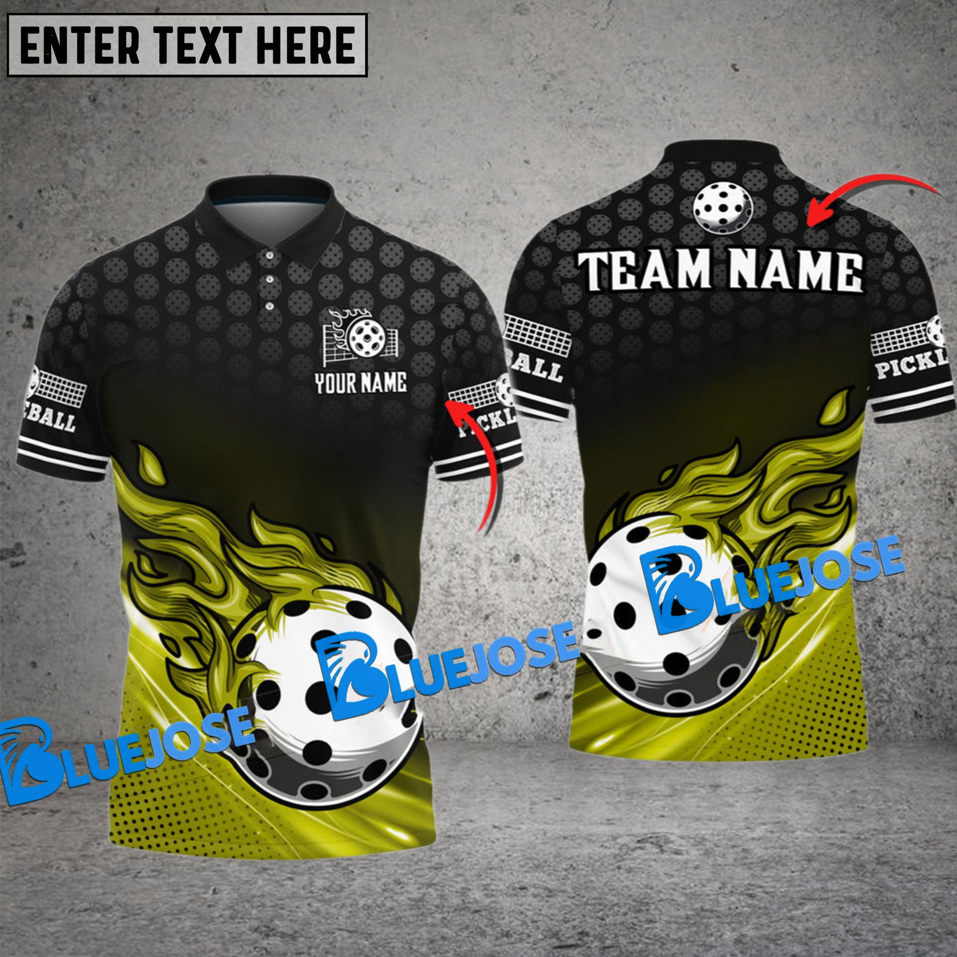 BlueJose Pickleball Fire Dot Personalized Name, Team Name Unisex Shirt (4 Colors)