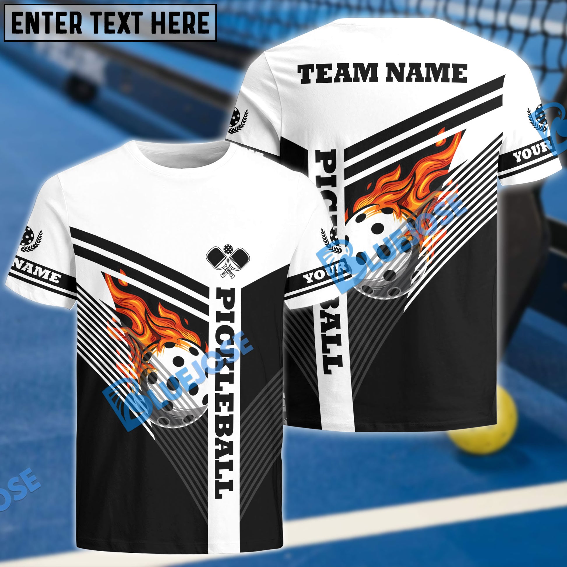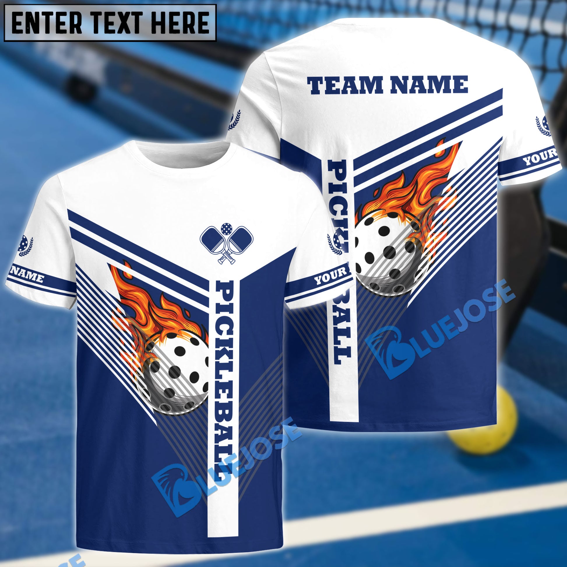 BlueJose Pickleball Fire Line Personalized Name, Team Name Unisex Shirt (4 Colors)