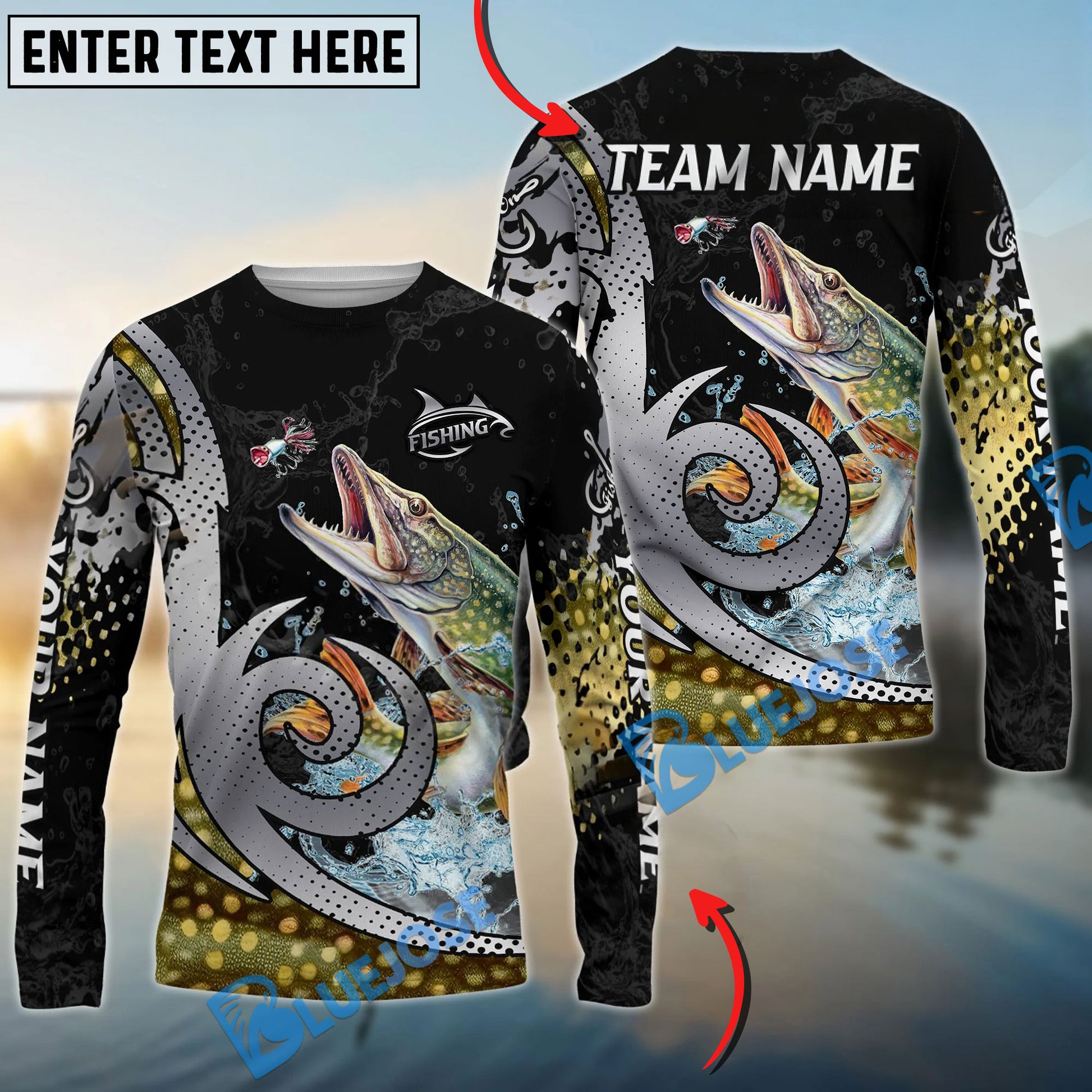 Bluejose Pike Fishing Bold Skin Modern Graphic Custom Name & Team Name 3D Shirts