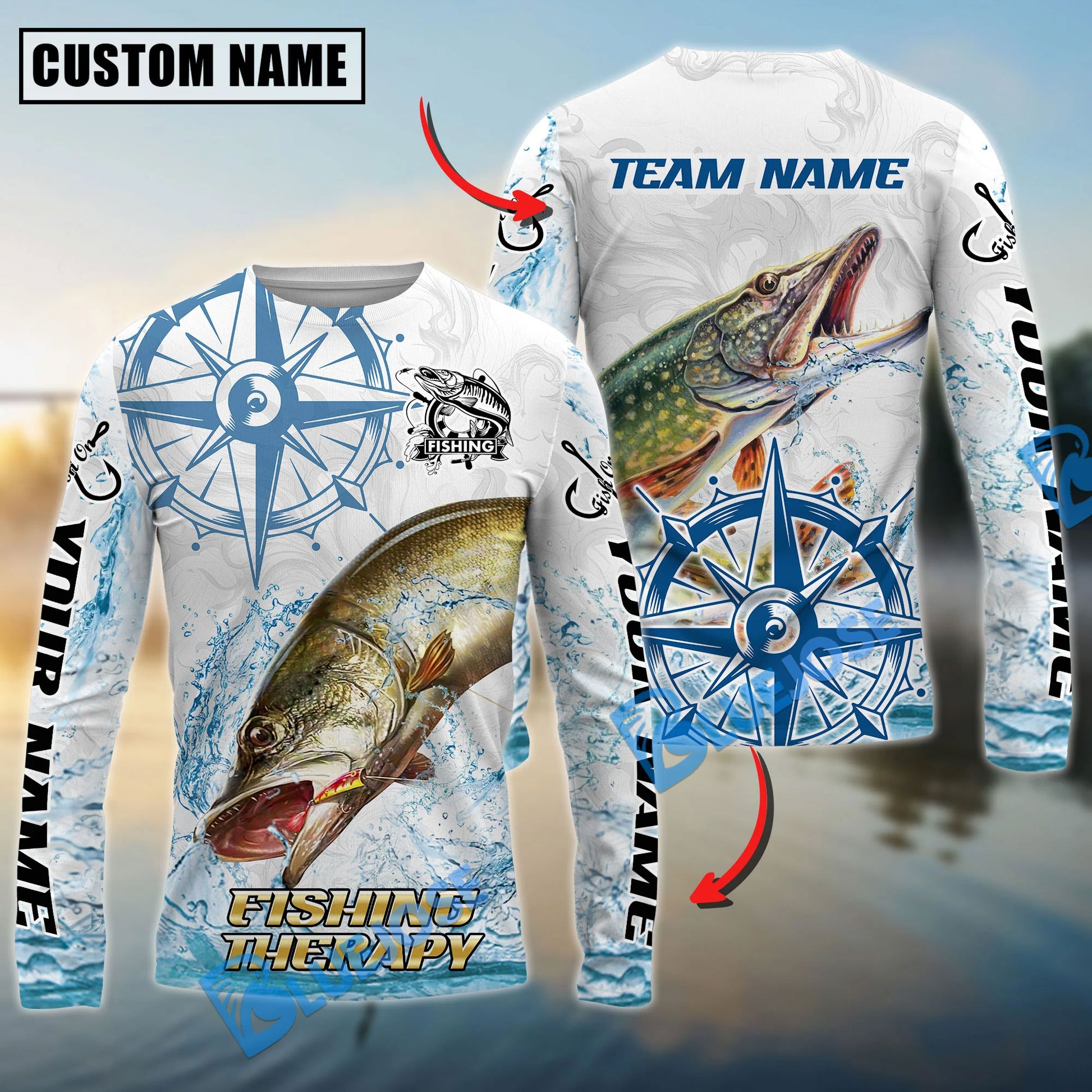 Bluejose Pike Fishing Compass Navigation Style Custom Name & Team Name 3D Shirts