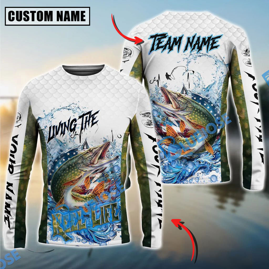 Bluejose Pike Fishing Patriotic Reel Life Design Custom Name & Team Name 3D Shirts
