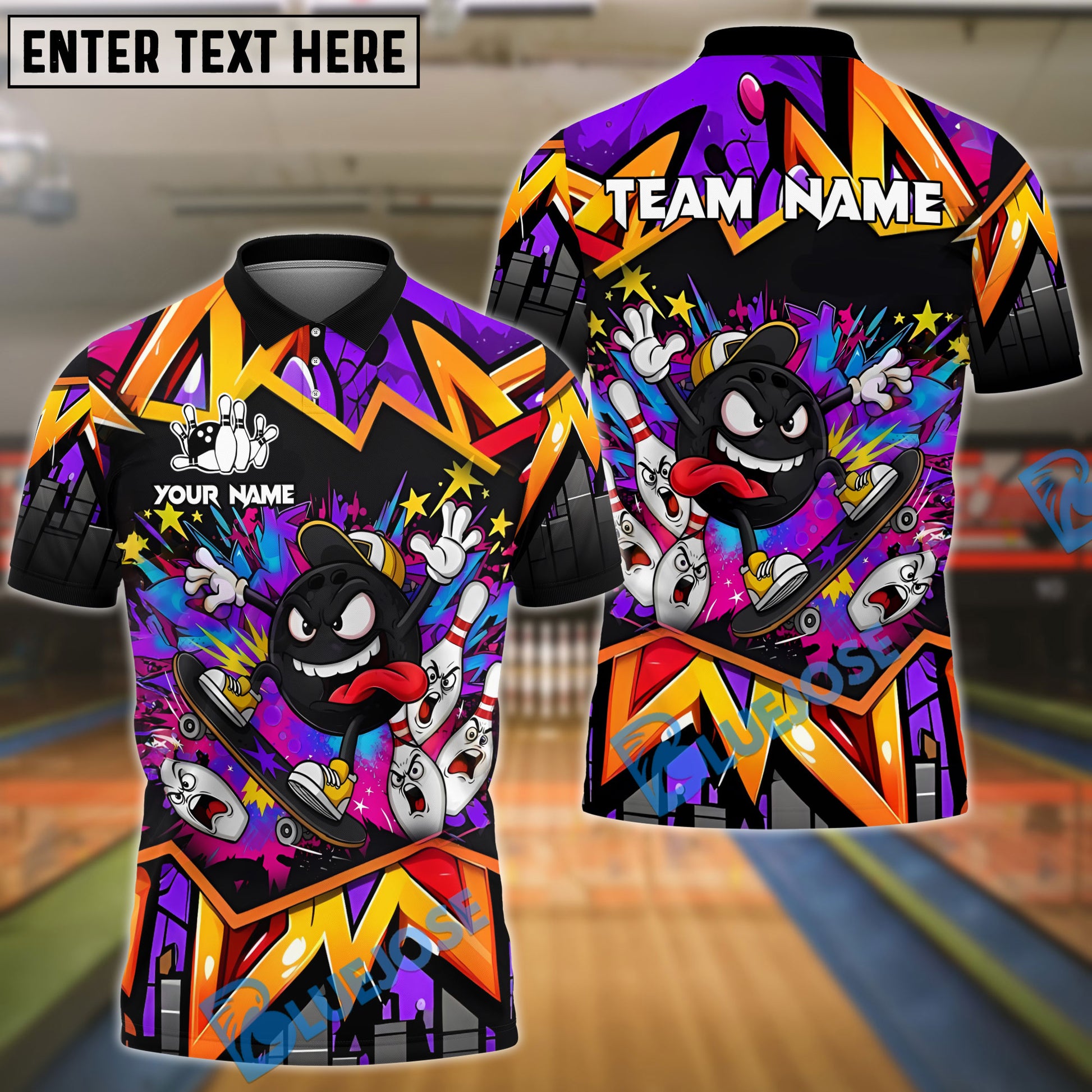 BlueJose Skater Bowling Ball Attack Customized Name, Team Name 3D Shirt (4 Colors)