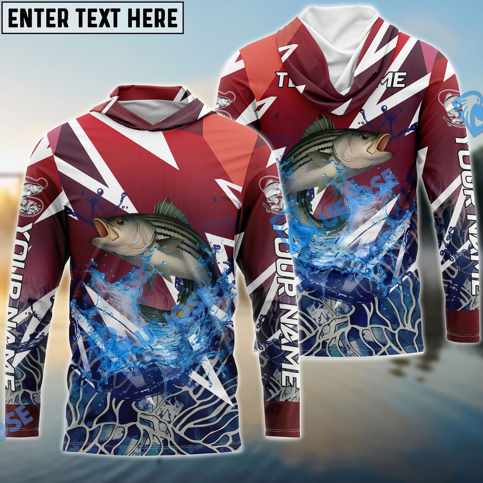 Bluejose Striped Bass Fishing Red Fury Pattern Custom Name & Team Name 3D Shirts