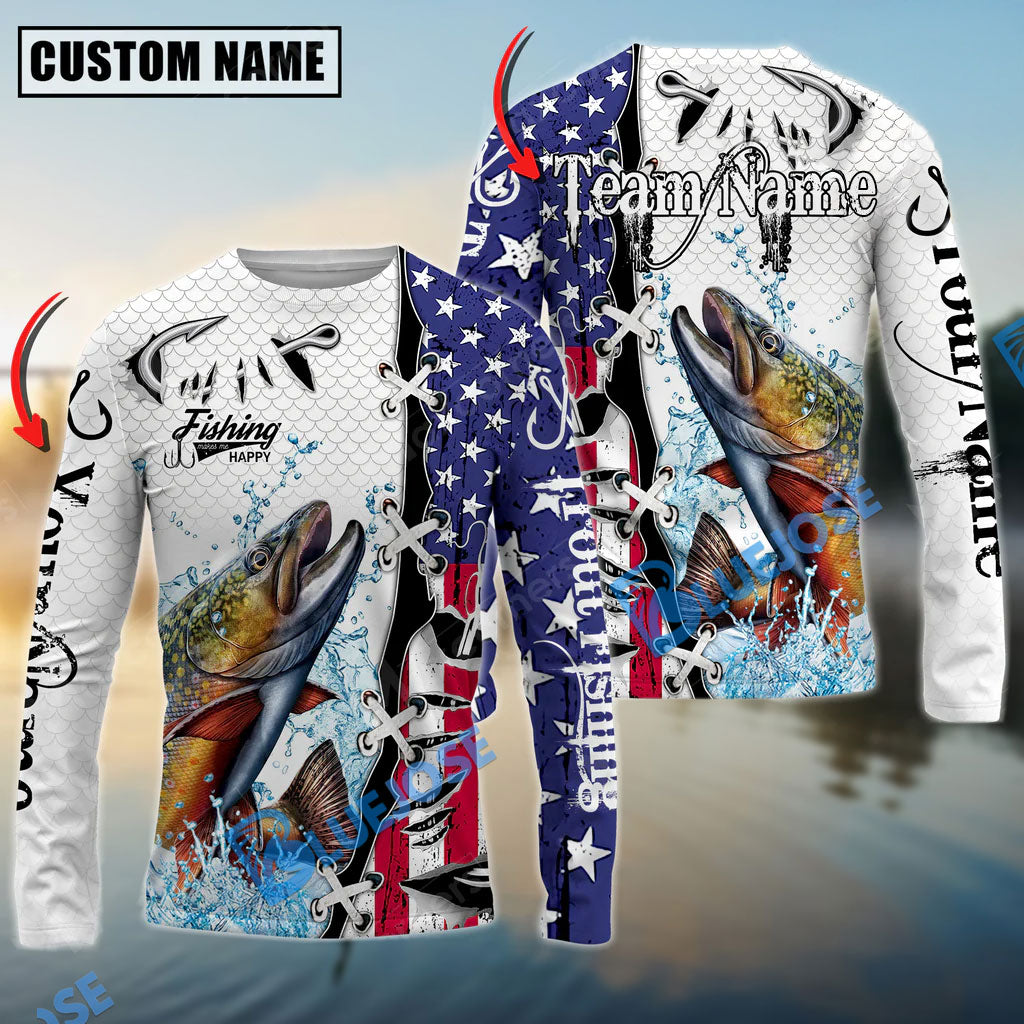 Bluejose Trout Fishing American Flag Splash Custom Name & Team Name 3D Shirts