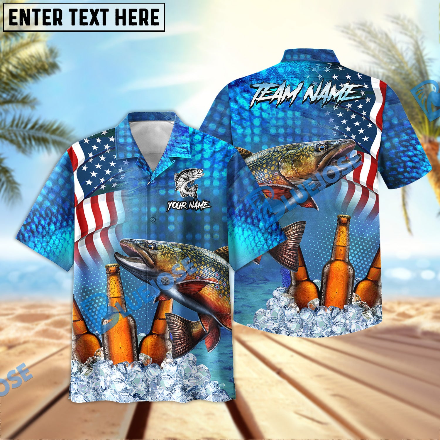 BlueJose Trout Fishing Beer USA Flag Personalized All Over Print 3D Hawaiian Shirt