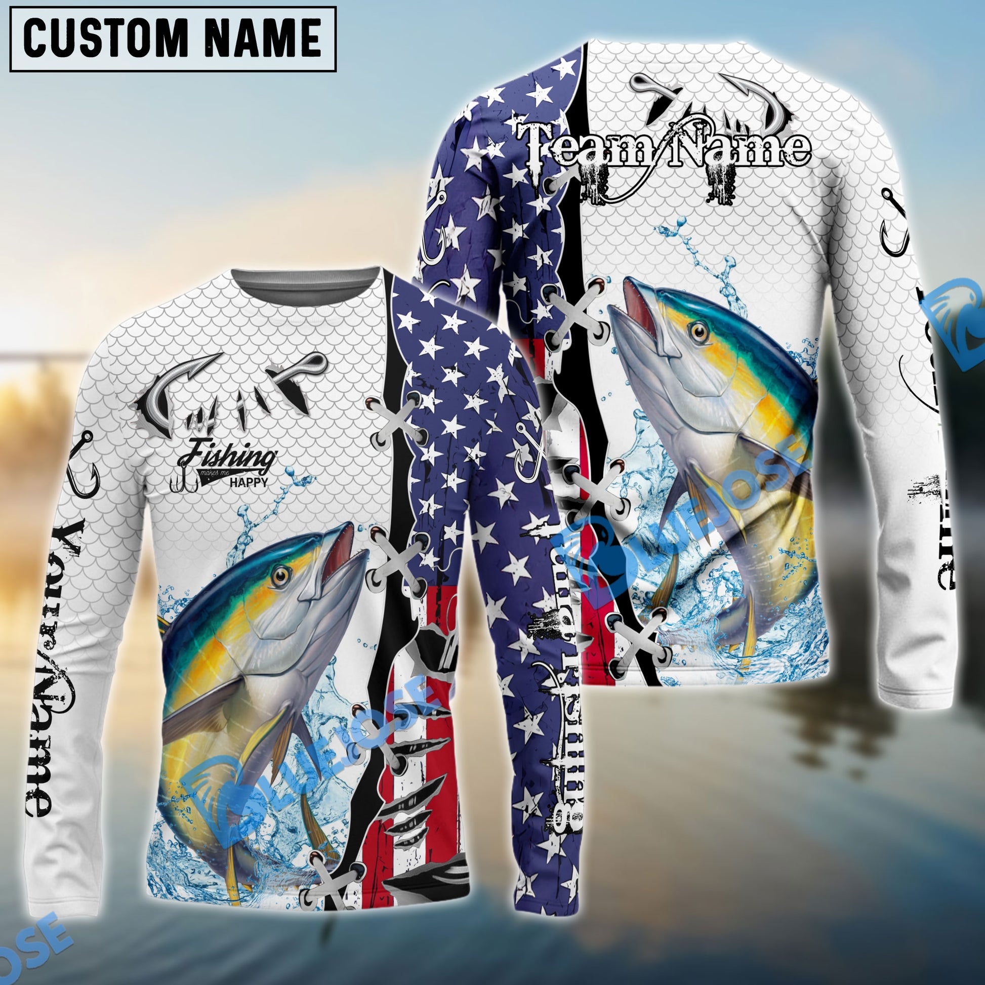 Bluejose Tuna Fishing American Flag Splash Custom Name & Team Name 3D Shirts