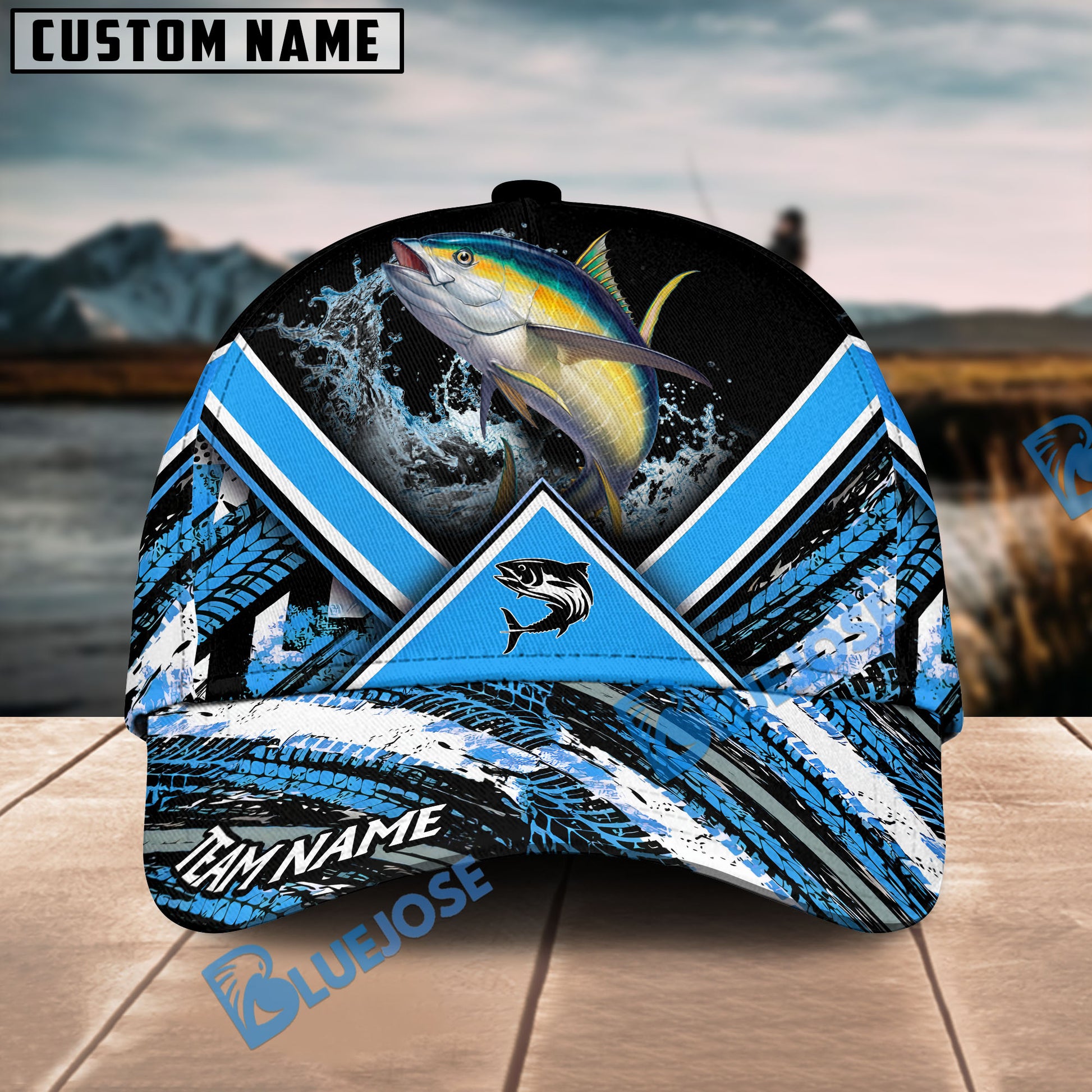 Bluejose Tuna Fishing Blue Tire Triangle Pattern Personalized Cap