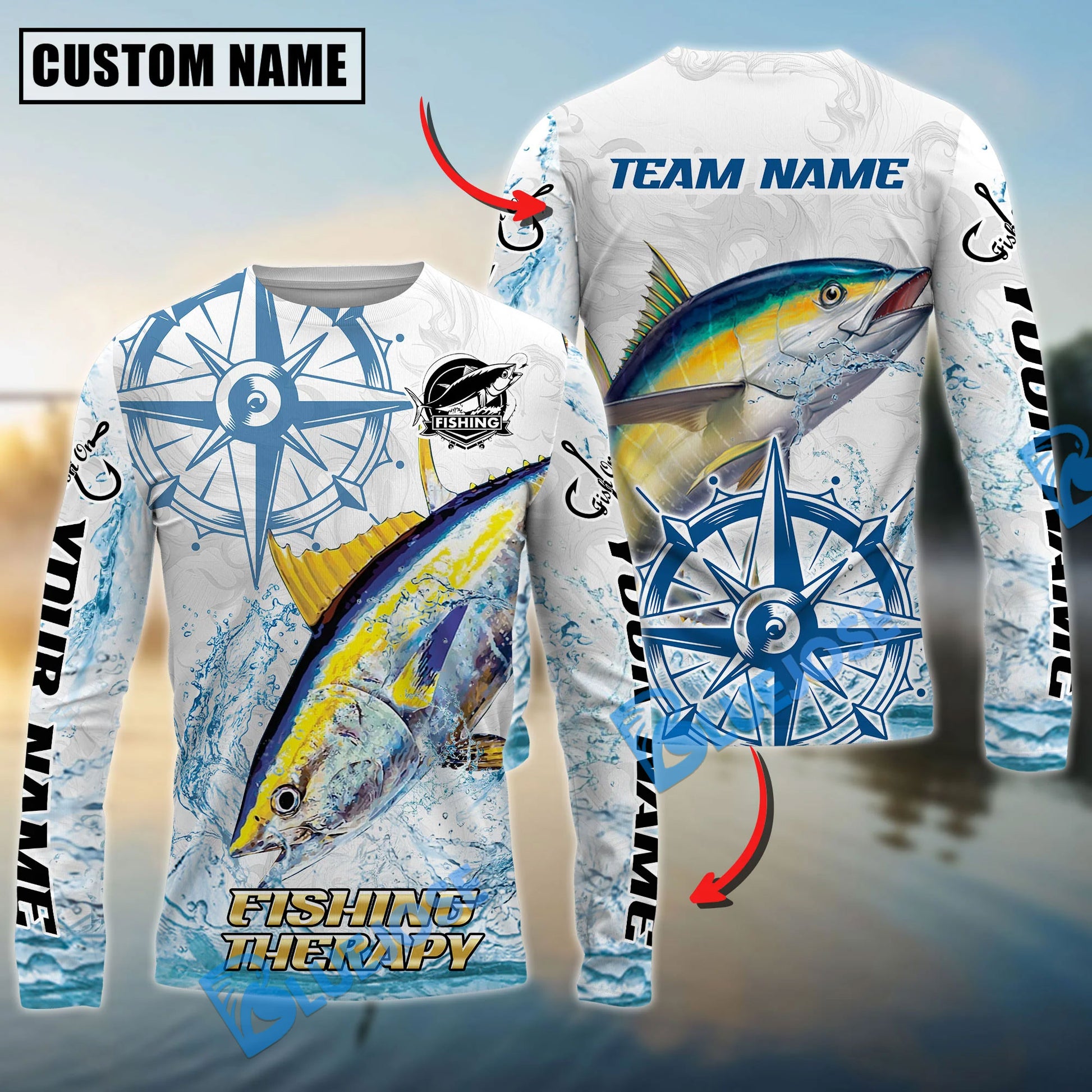 Bluejose Tuna Fishing Compass Navigation Style Custom Name & Team Name 3D Shirts