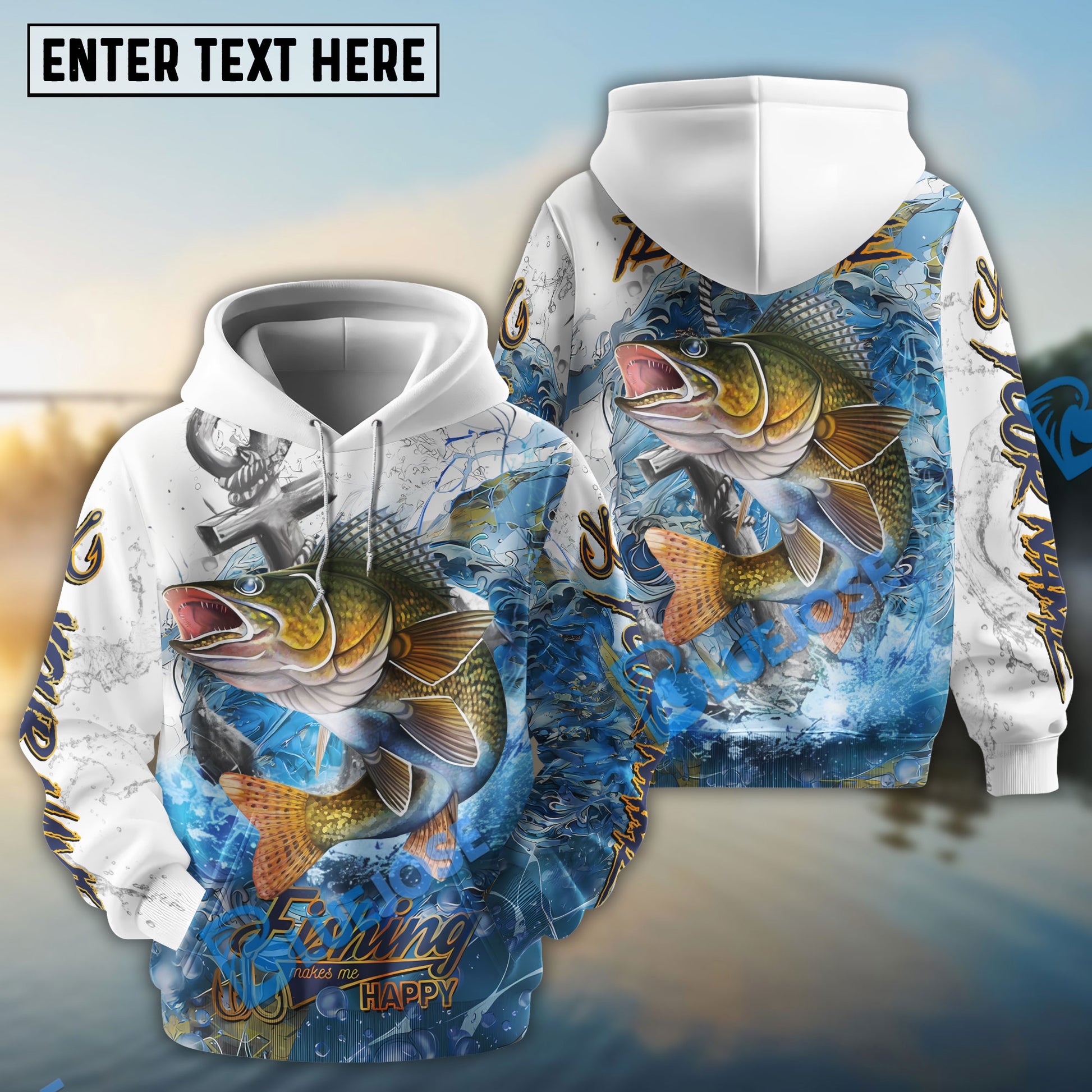 Bluejose Walleye Fishing Anchor Ocean Splash Design Name & Team Name 3D Shirts