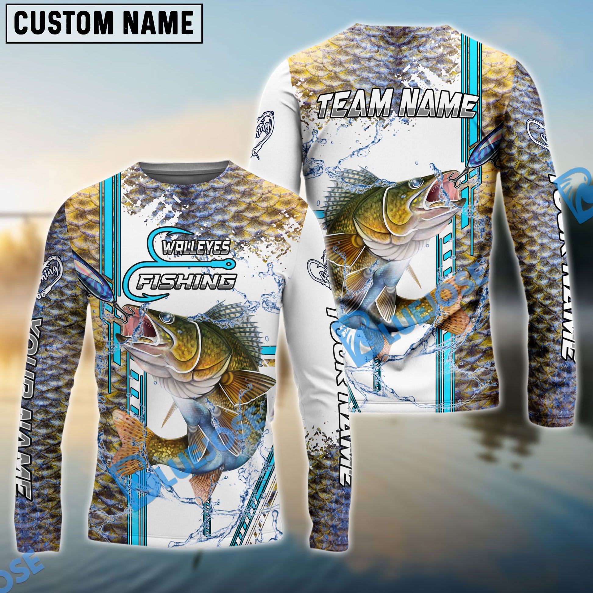 Bluejose Walleye Fishing Blue Line Skin Fish Pattern Sun Protection Personalized Name And Team Name 3D Shirts