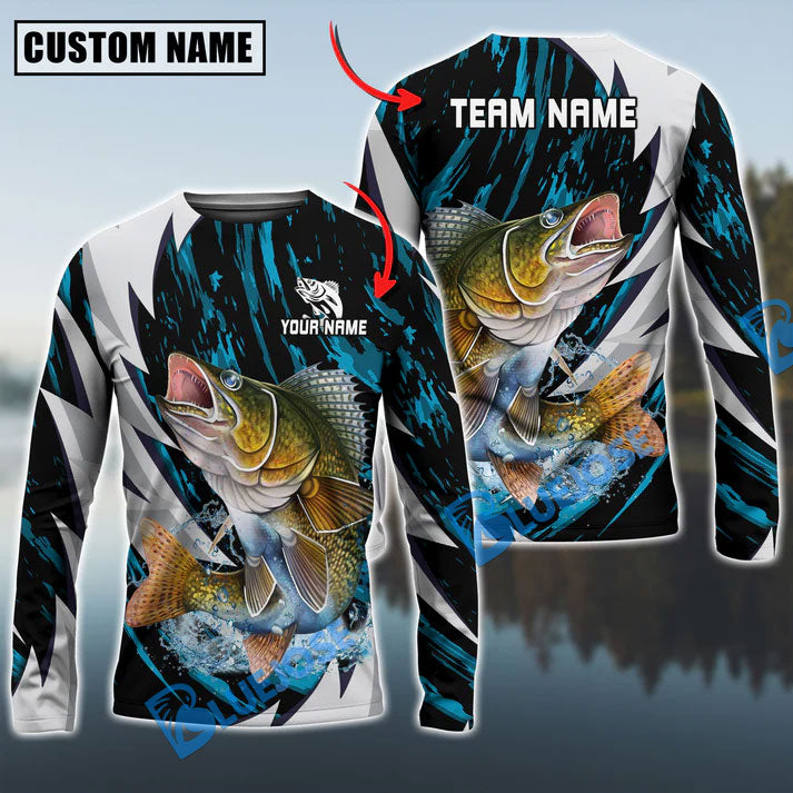Bluejose Walleye Fishing Fire Thunderstorm Name & Team Name 3D Shirts
