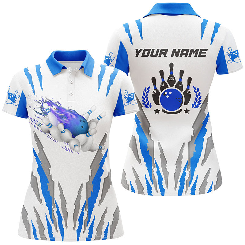 BlueJose Blue Flame Bowling Ball Personalized All Over Printed Shirt For Women