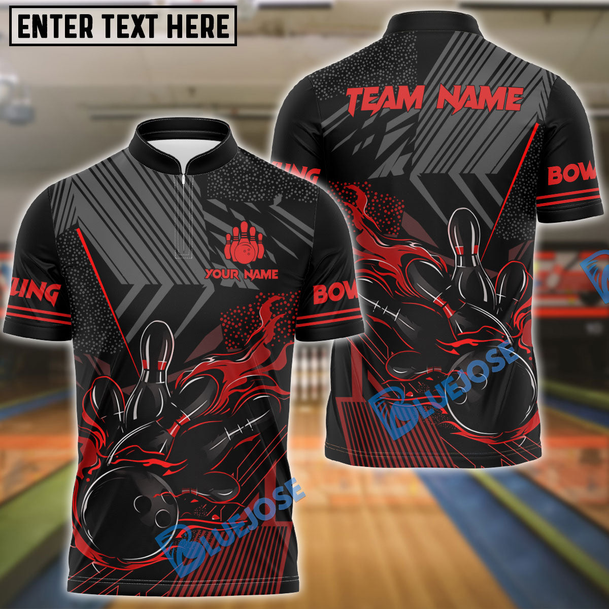 BlueJose Bowling And Pins Black Flaming Multicolor Customized Name 3D Shirt (4 Colors)