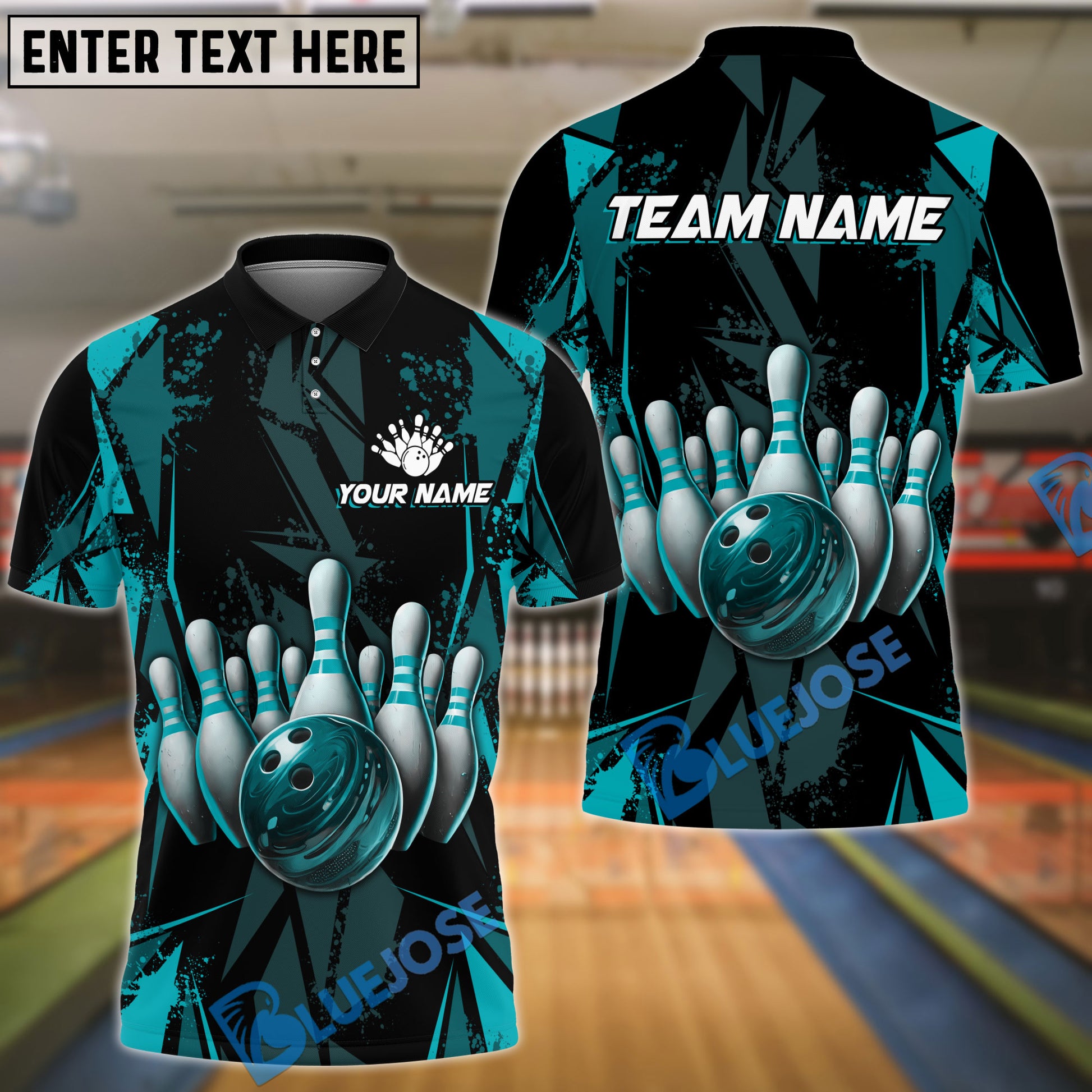 BlueJose Bowling And Pins Color Diamond Customized Name 3D Shirt ( 4 Colors )
