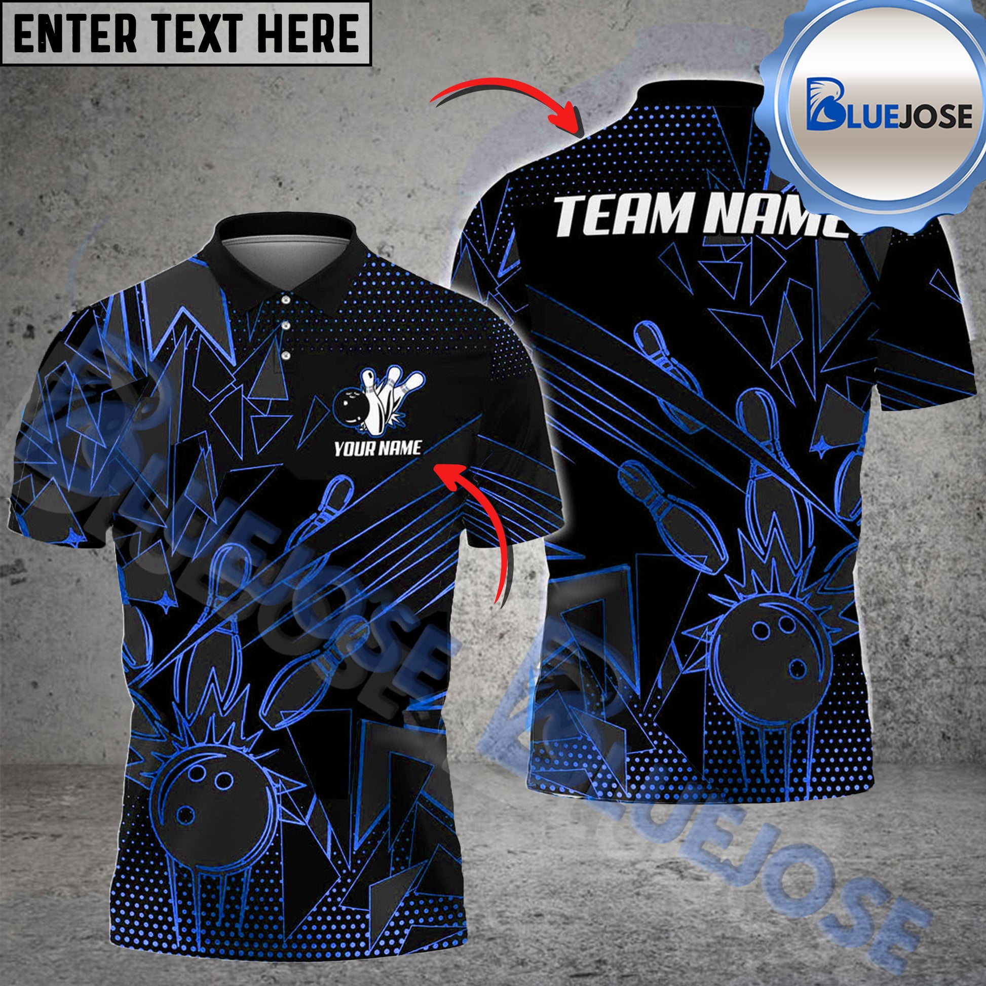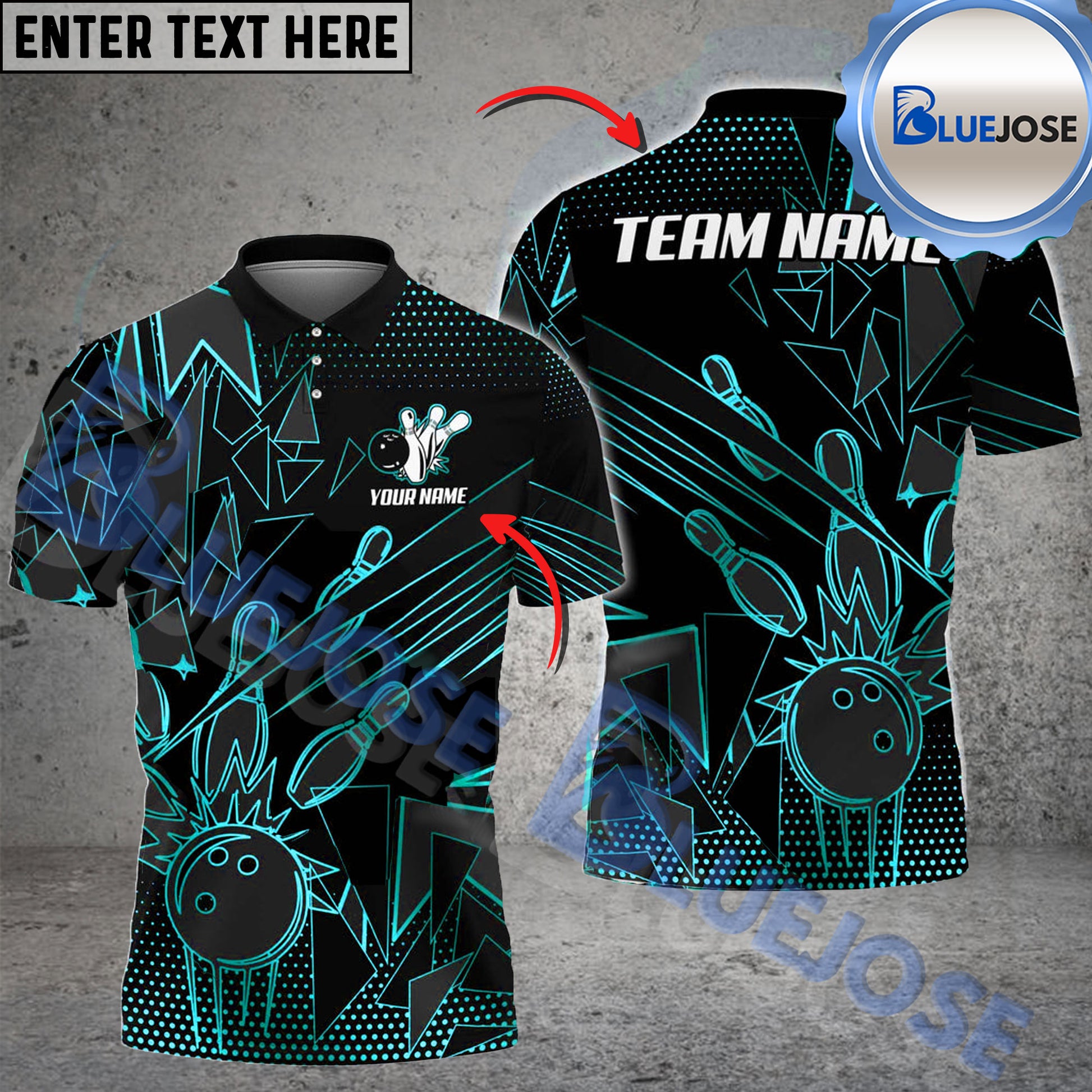 BlueJose Bowling And Pins Crack Glass Pattern Multicolor Customized Name 3D Shirt (6 Colors)