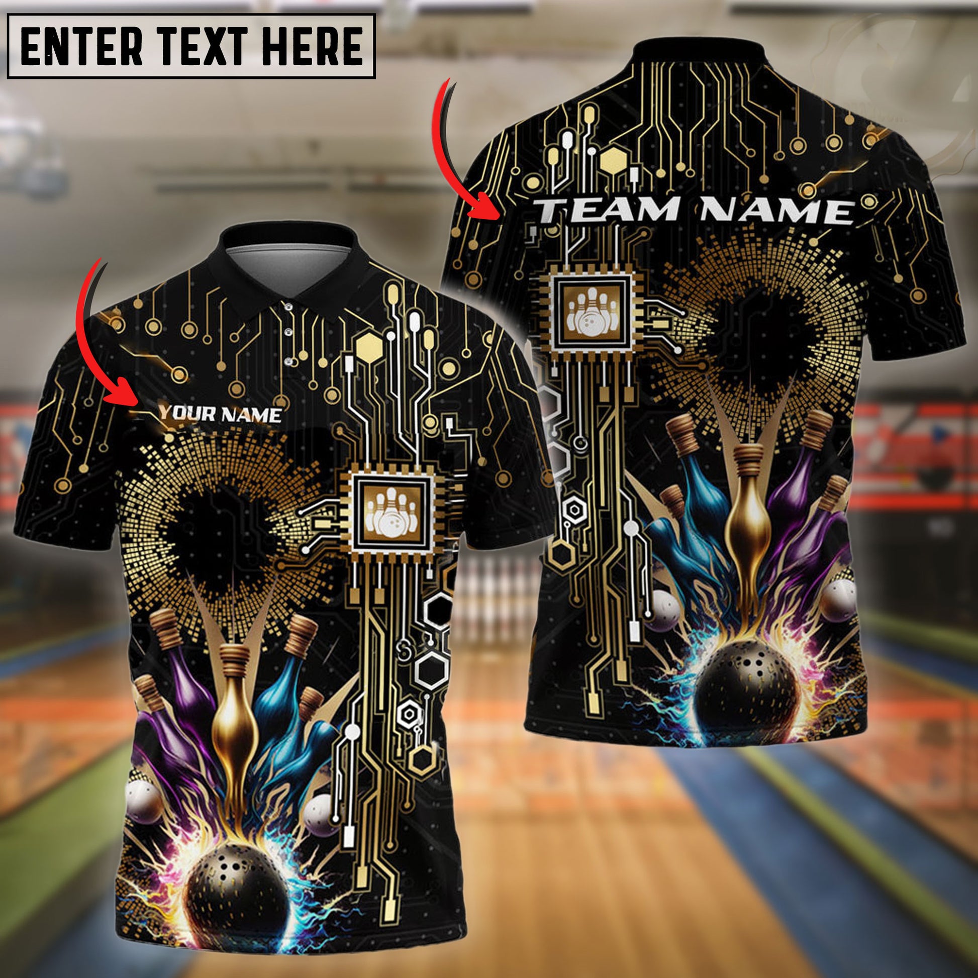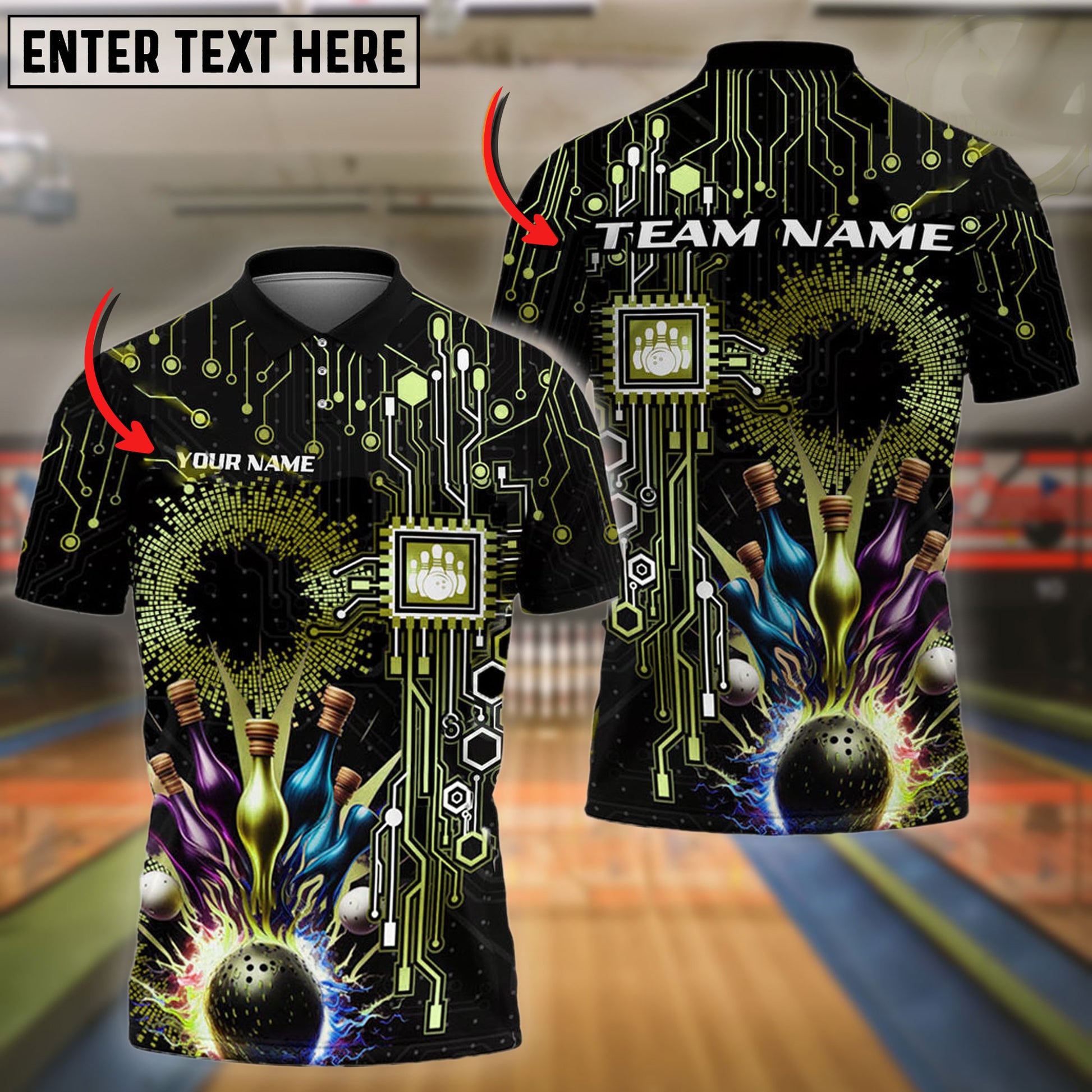 BlueJose Bowling And Pins Electric Pattern Customized Name 3D Shirt ( 6 Colors)