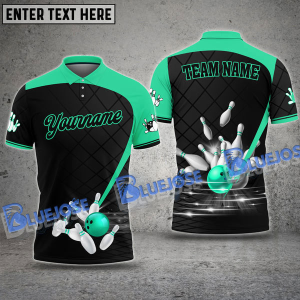 BlueJose Bowling and Pins Exclusive Sport Style Customized Name, Team Name 3D Shirt (4 Colors)