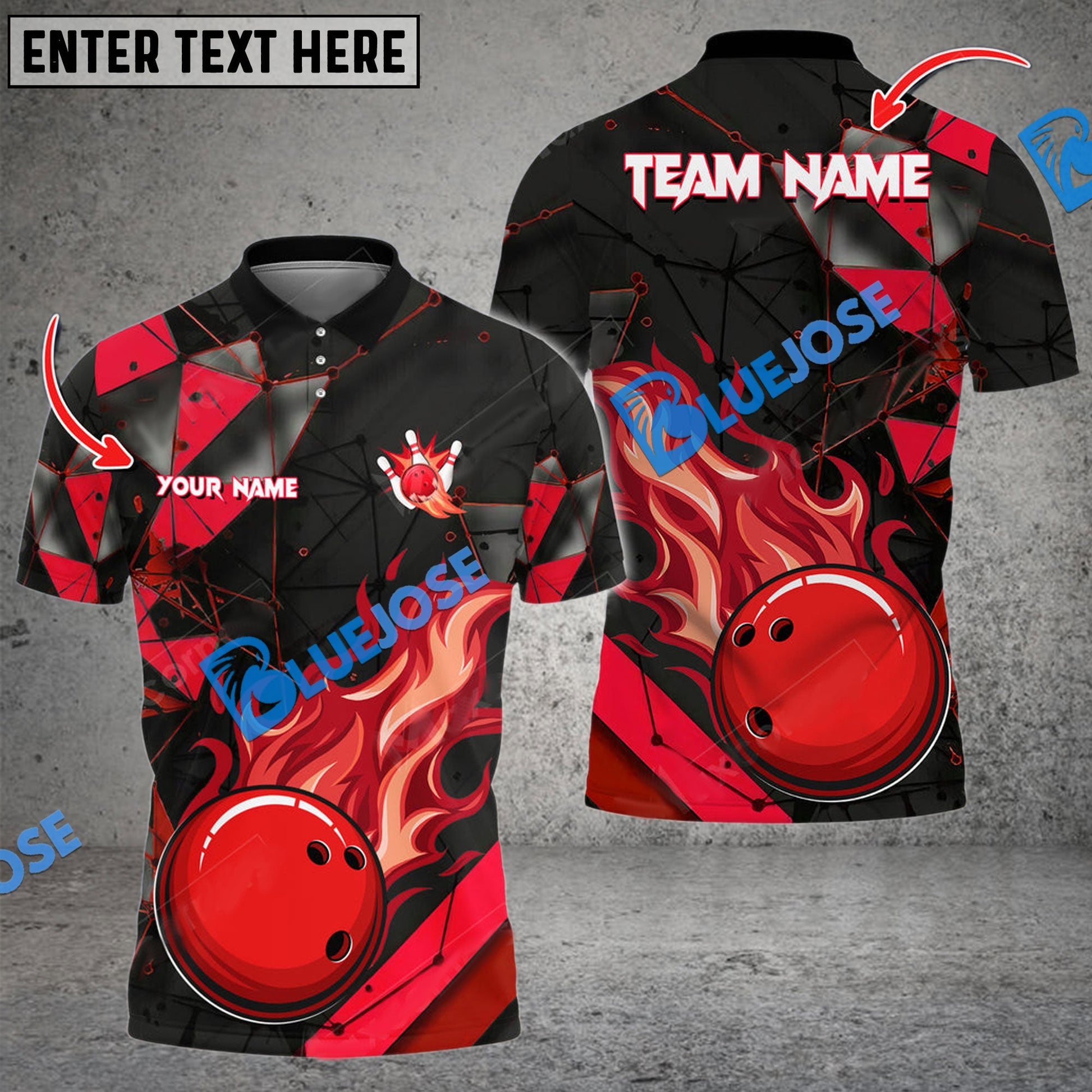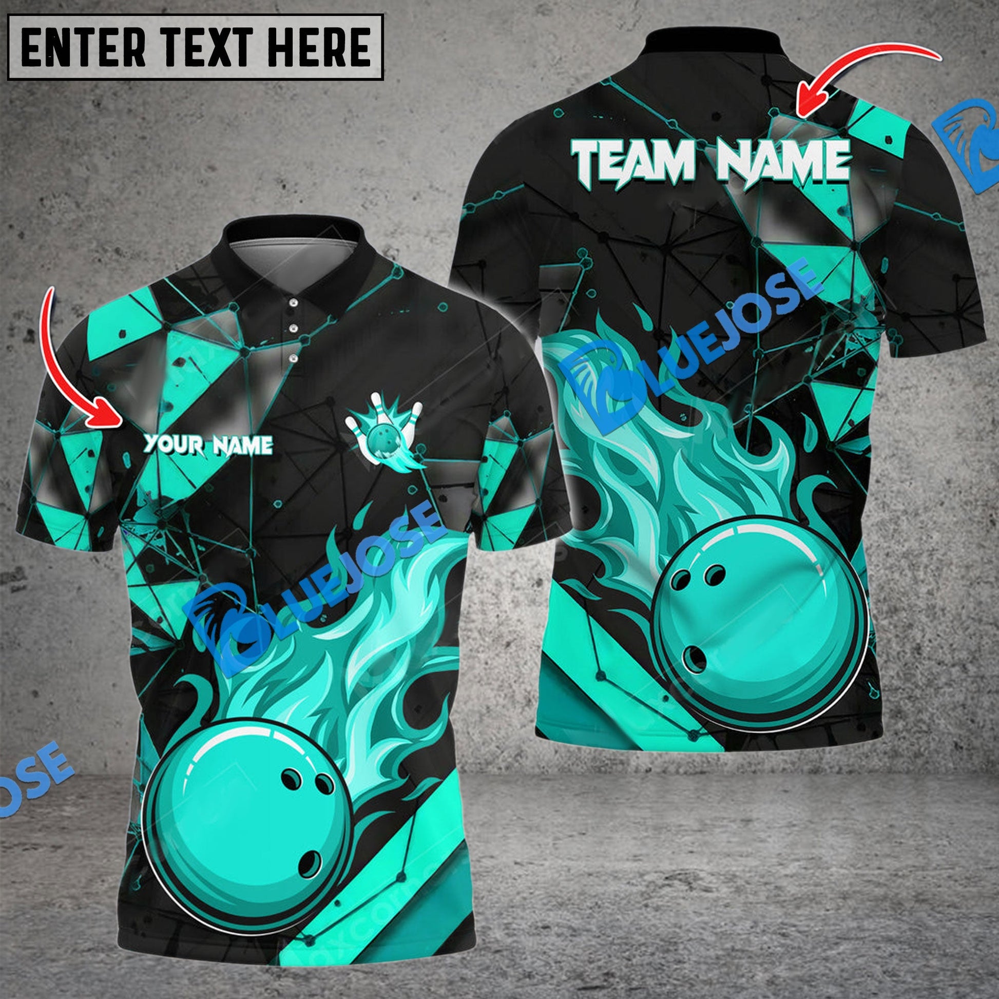 BlueJose Bowling And Pins Glass Fire Multicolor Customized Name 3D Shirt ( 4 Colors )