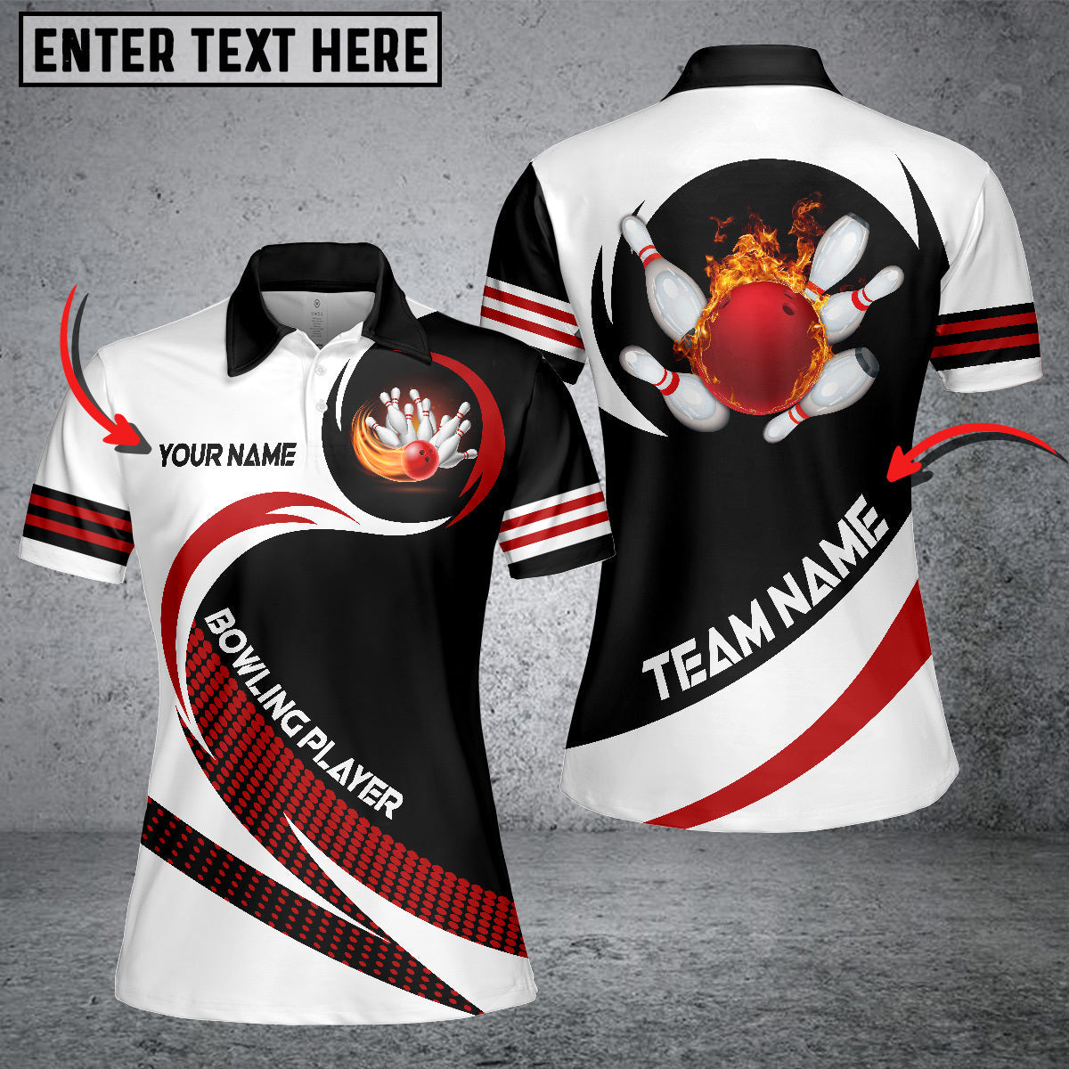 BlueJose Bowling Ball And Pins Flame Premium Customized Name 3D Shirt For Women