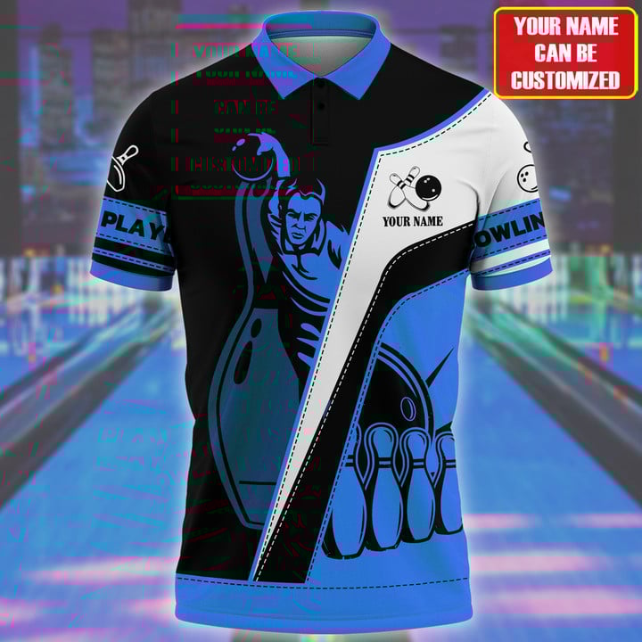 BlueJose Bowling Player Multicolor Customized Name 3D Polo Shirt