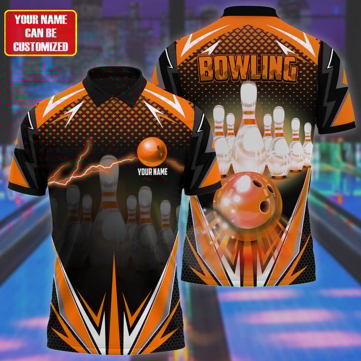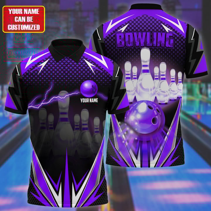 BlueJose Bowling Thunder Pattern Multicolor Customized Name 3D Polo Shirt
