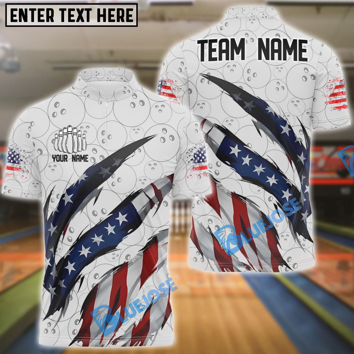 BlueJose Bowling US Flag Ball Pattern Customized Name, Team Name 3D Shirt