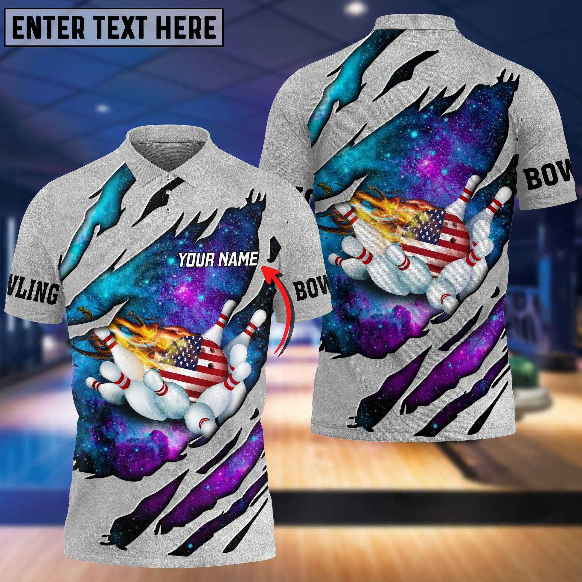 BlueJose Bowling USA Flag Galaxy Classic Customized Name 3D Shirt